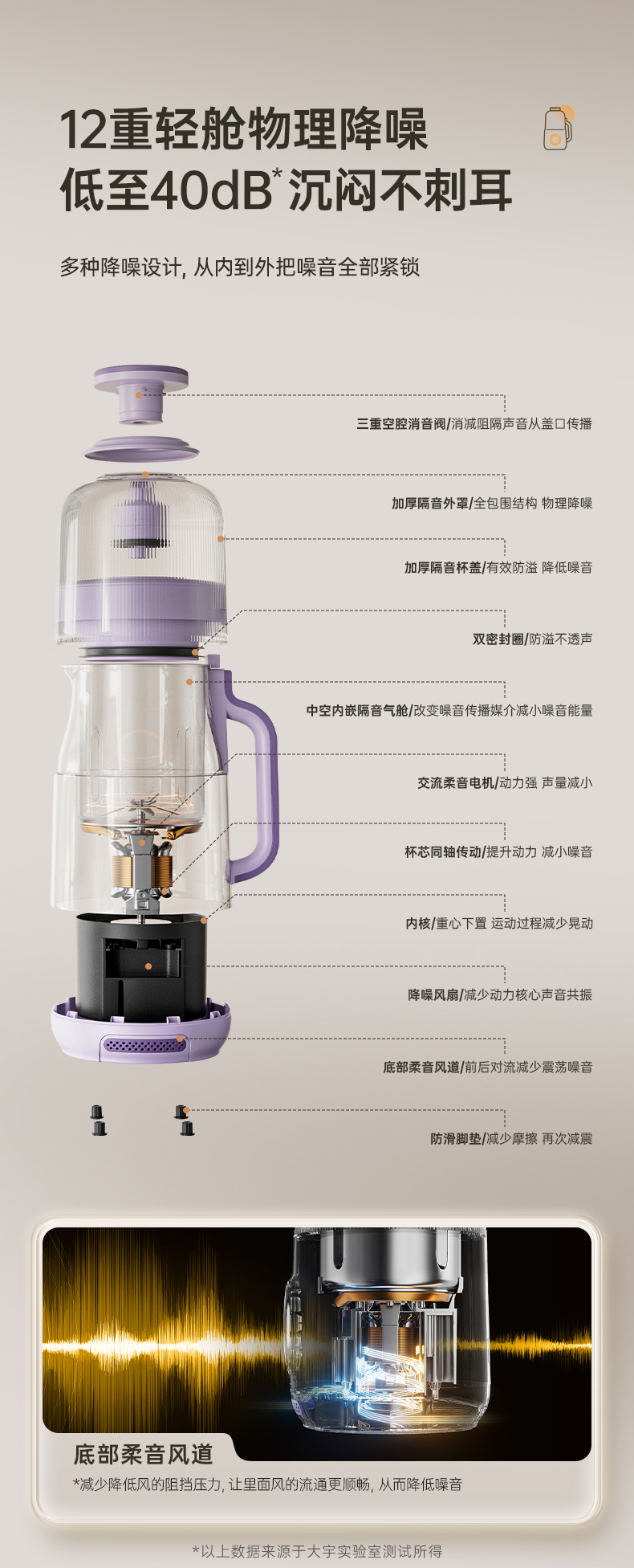 升级三: 升级特配降噪消音通道,柔音工作,低至40db