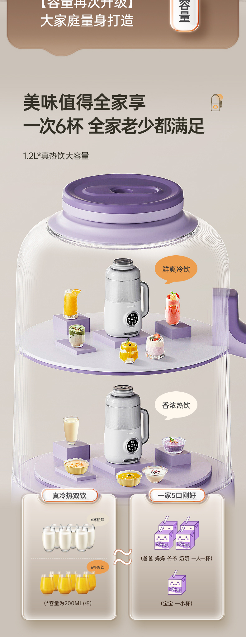 升级五: 升级1200ML容量,可以满足全家使用