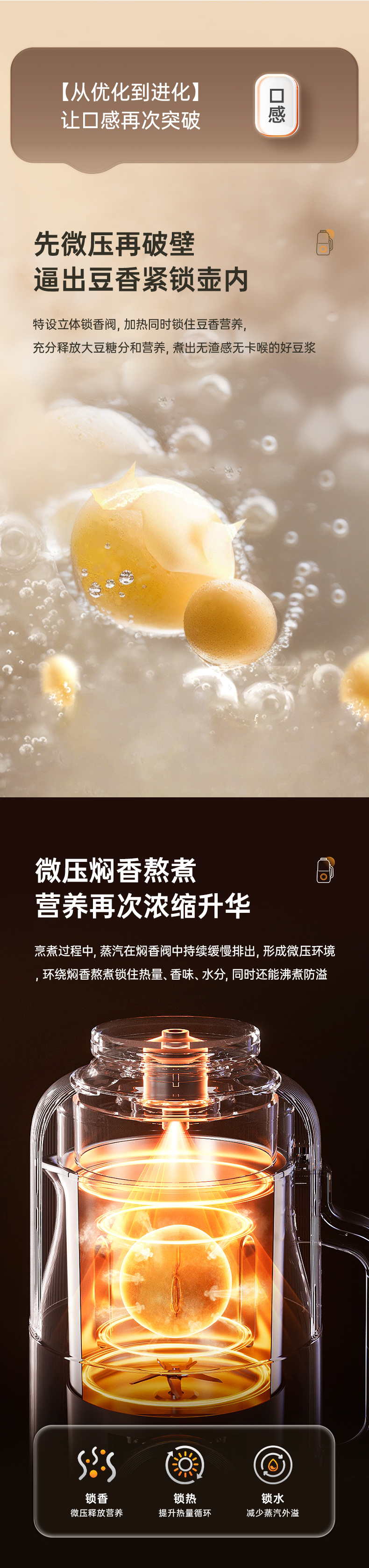 升级一: 升级带微压焖煮,营养再次升华,无豆腥味