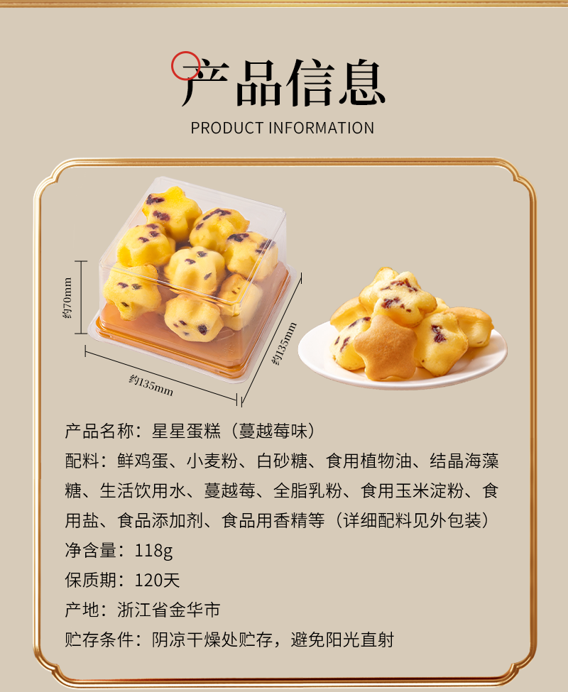 【自营】福事多118g小蛋仔星星蛋糕(肉松味/蔓越味)