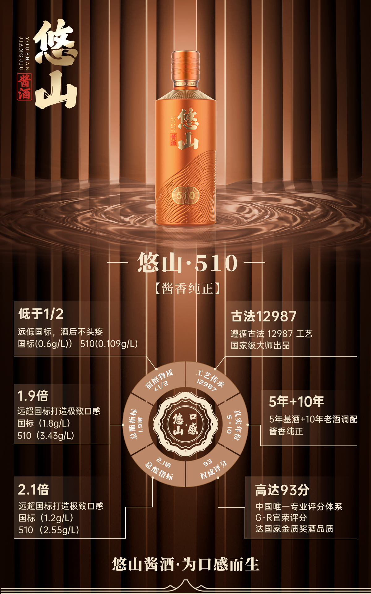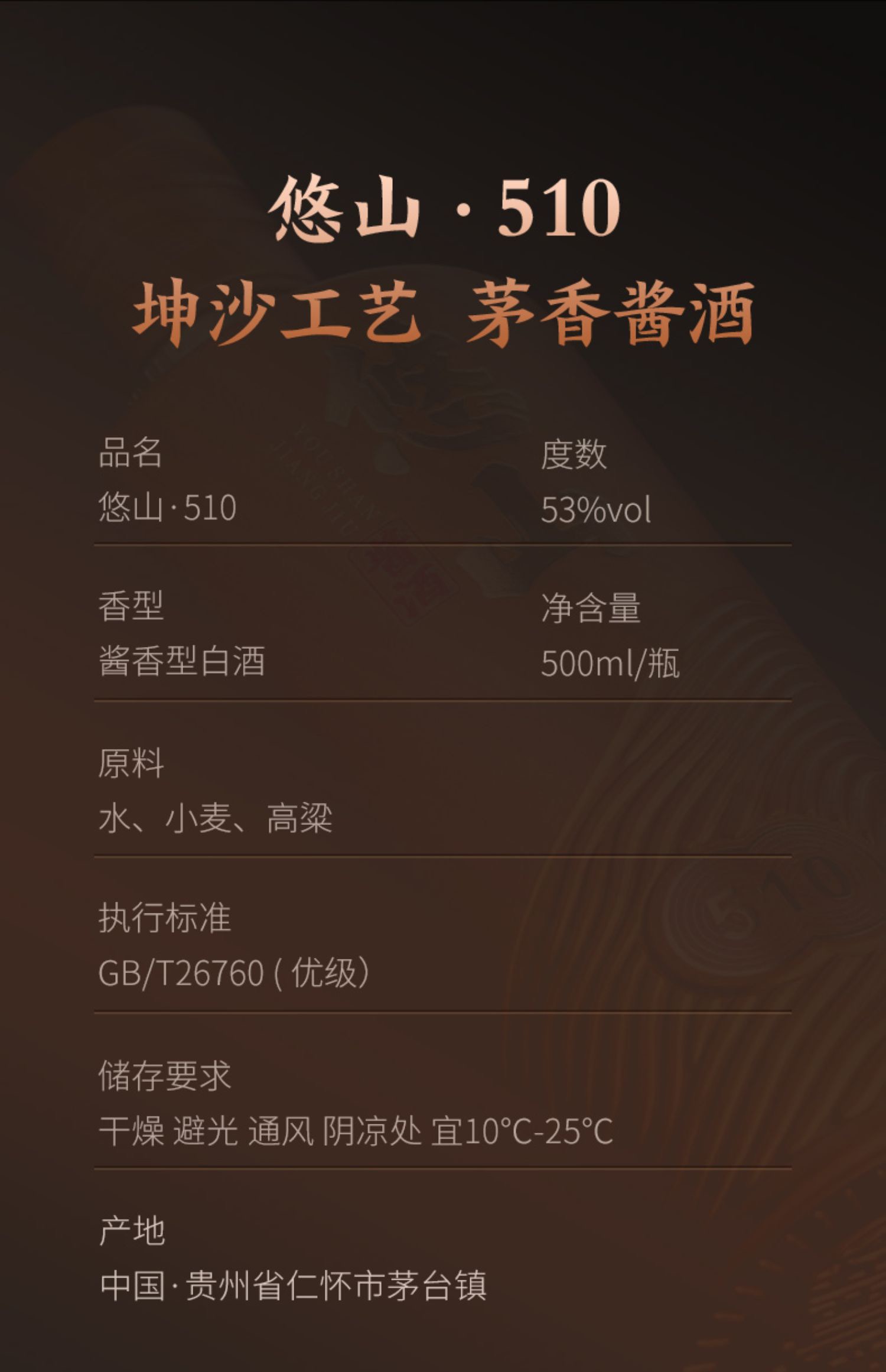 悠山酱酒 酱香·510 白酒酱香型 53度高度白酒醇正茅香酱酒500ml