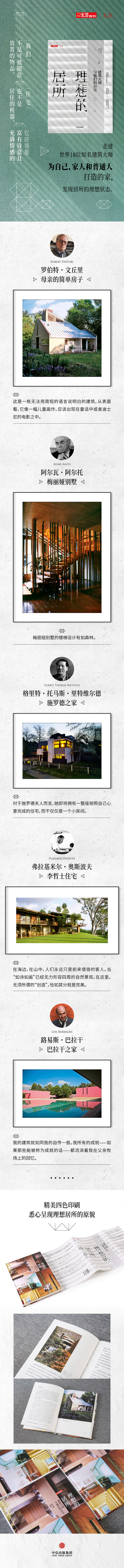 在这一点上,建筑大师可以给予我们很好的参考。《理想的居所》选取了世界建筑大师为自己、家人以及普通人设计的自宅作为案例,通过其这些自宅的建造、改建等的描写和评价,向读者展现居所包容并体现居住者的个性特色,尊重满足人的居住需求,沟通人与自然的交流等方面的智慧,为读者提供居住美学相关知识。