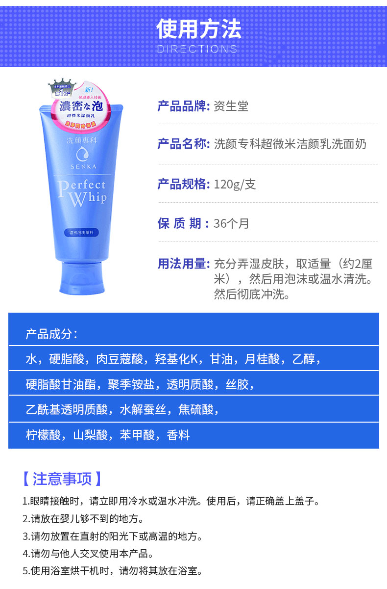 【日本直邮女神节专供】日本 资生堂专科 泡沫氨基酸洗面奶 120g(872444)