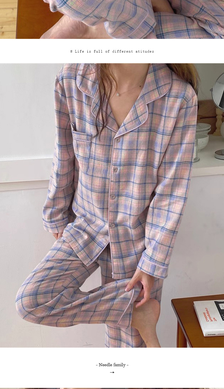简约休闲少女可外出睡衣新款新品秋季薄款翻领开衫家居服套装实拍新款新品