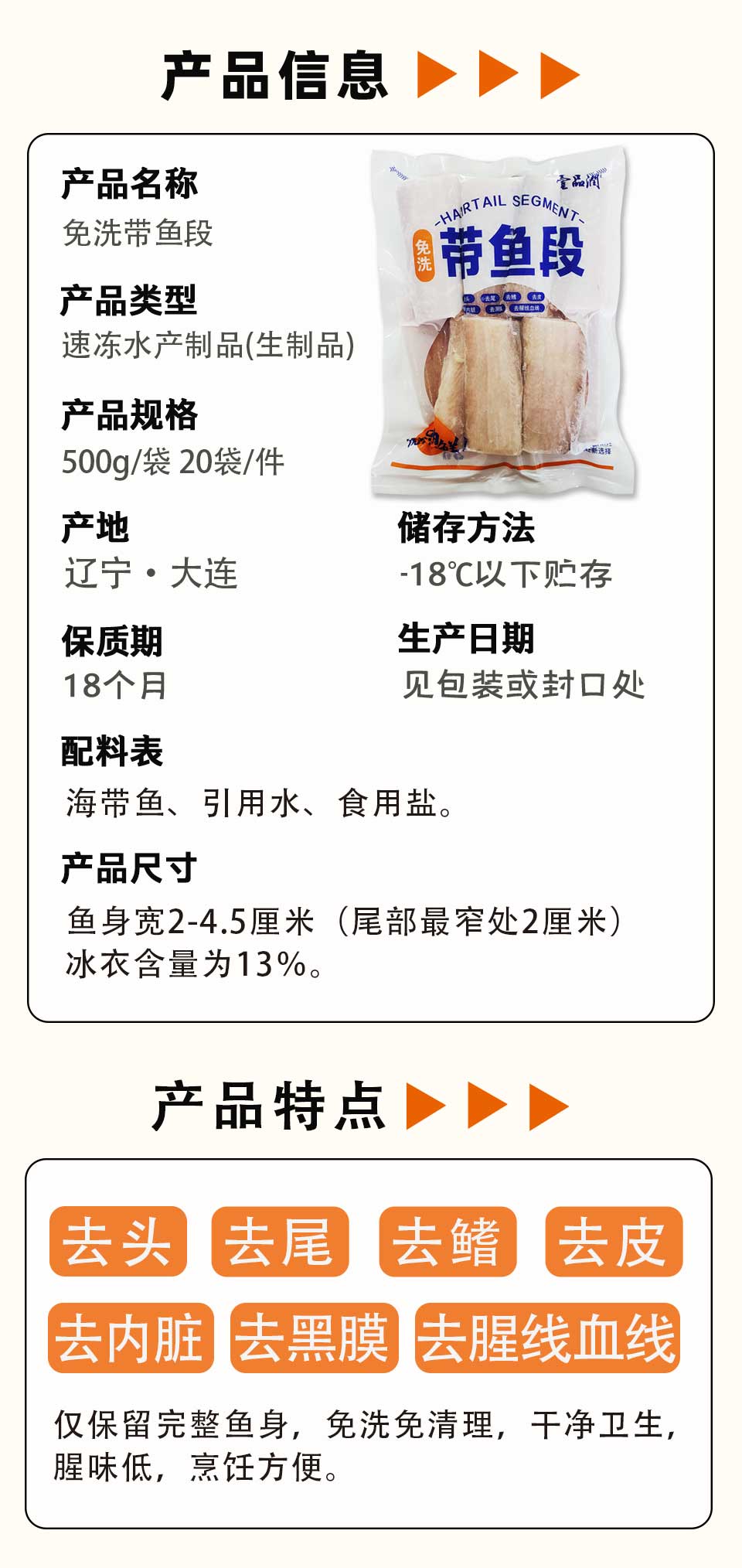 壹品润免洗带鱼段 500g/袋 20袋/件