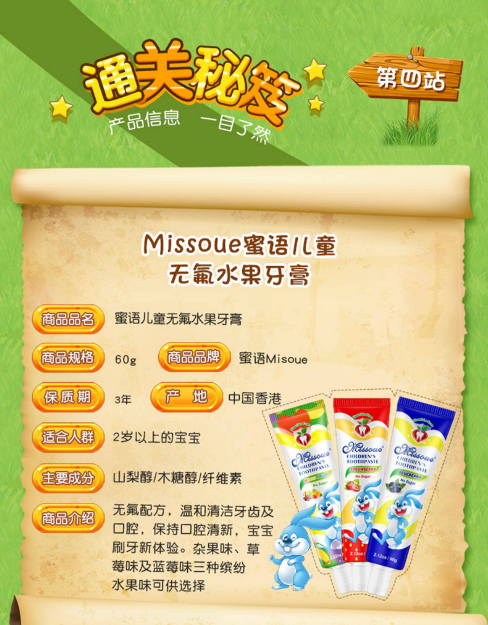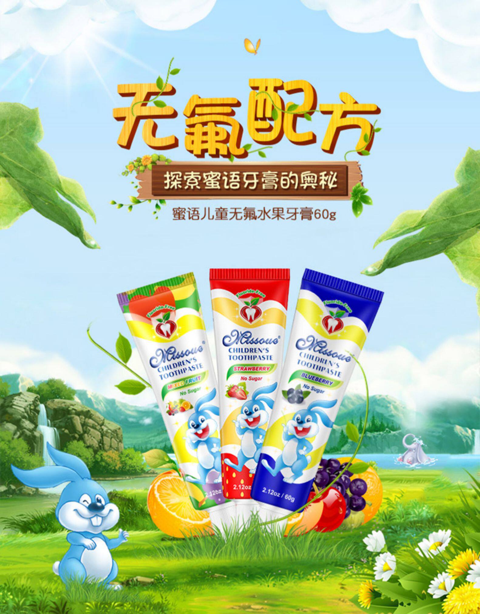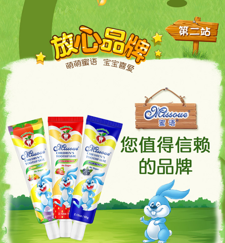 澳洲蜜语Missoue进口儿童牙膏3-6-12以上宝宝牙膏2岁无氟可吞咽