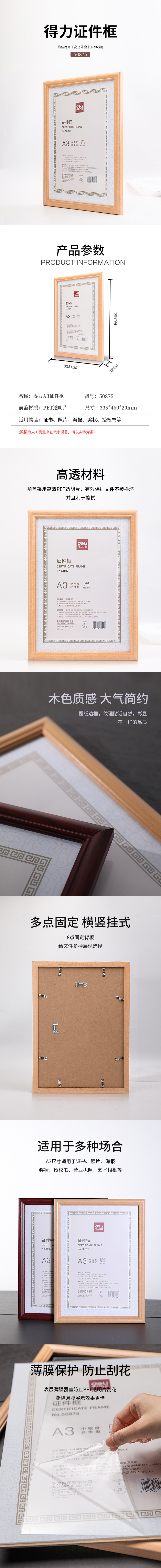 得力50875证件框(A3)(黄)(个)