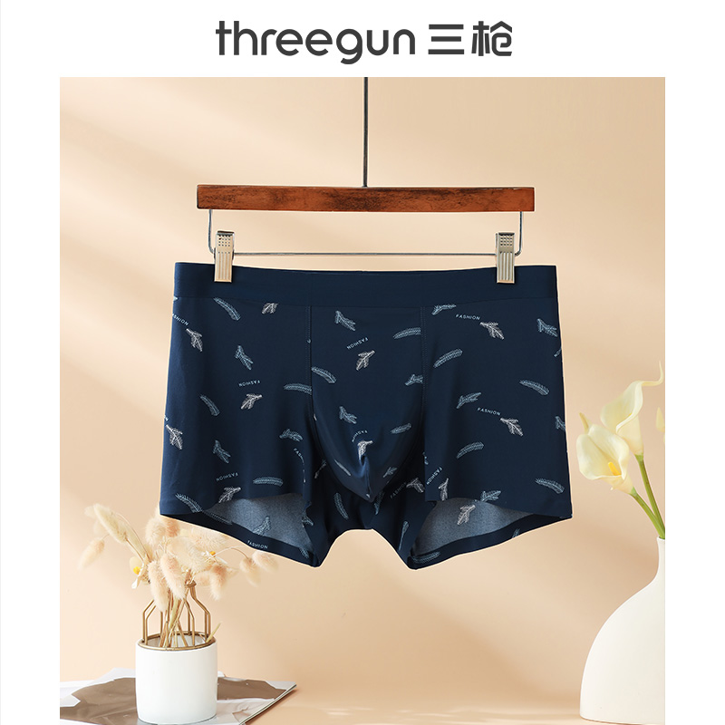 Threegun三枪 冰丝印花无痕男平脚裤-50935B031