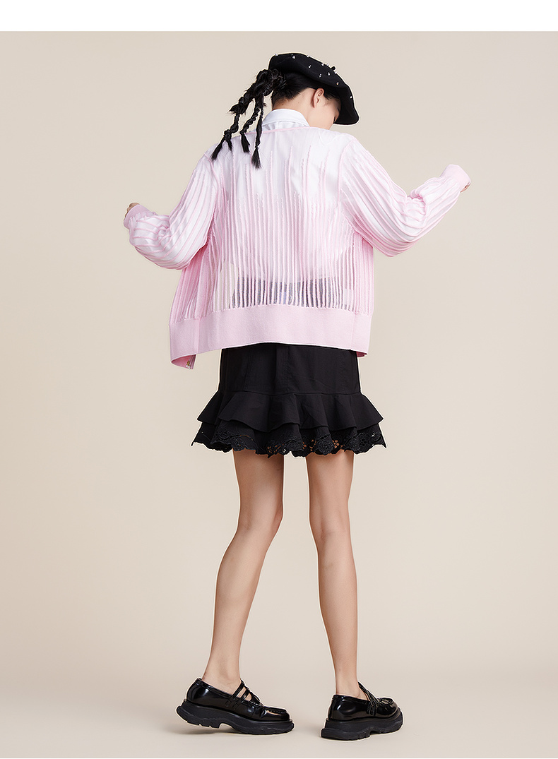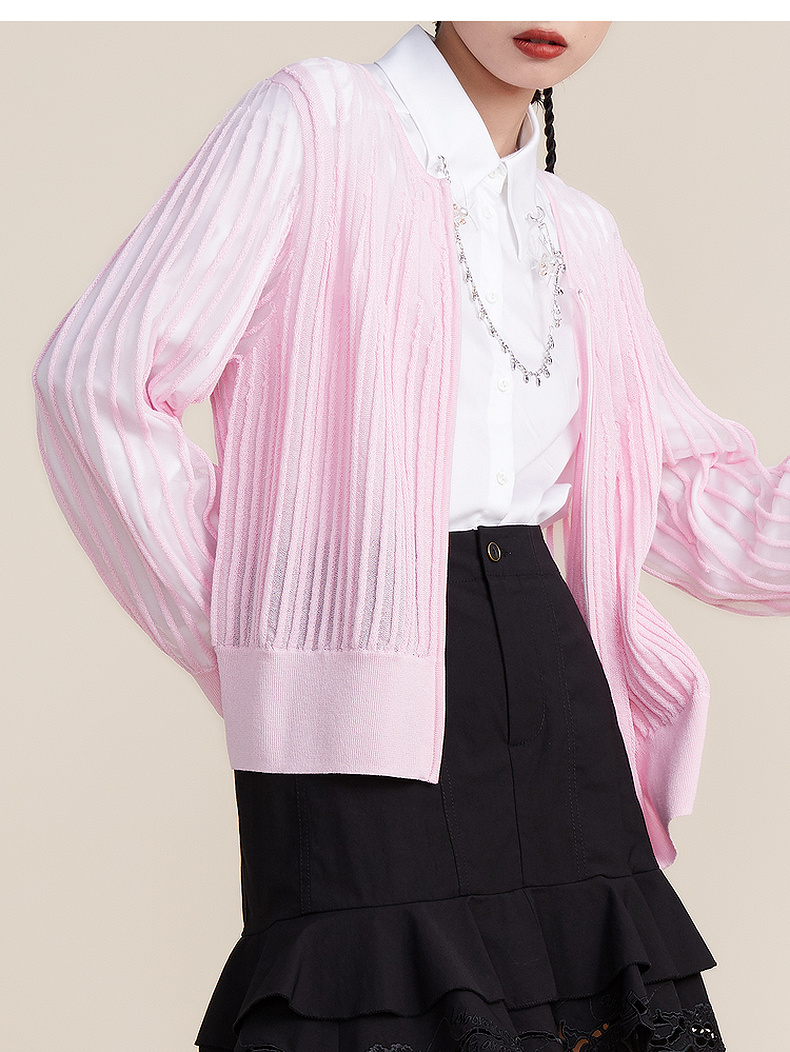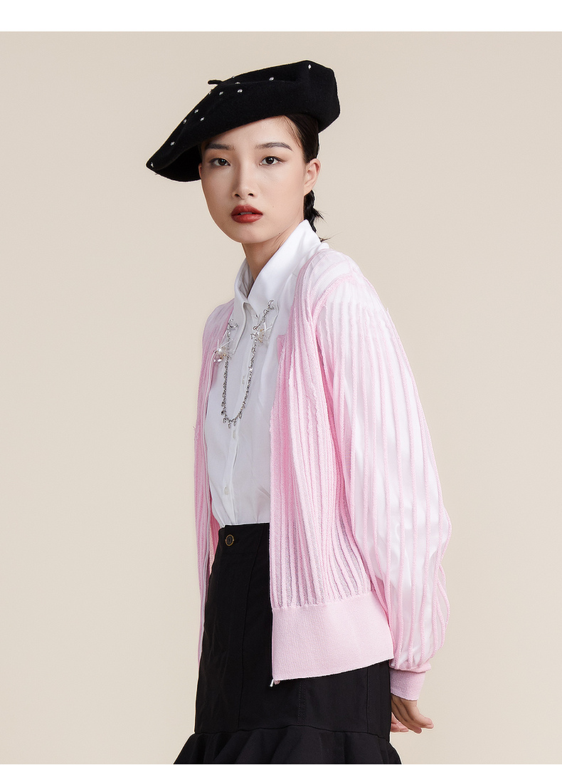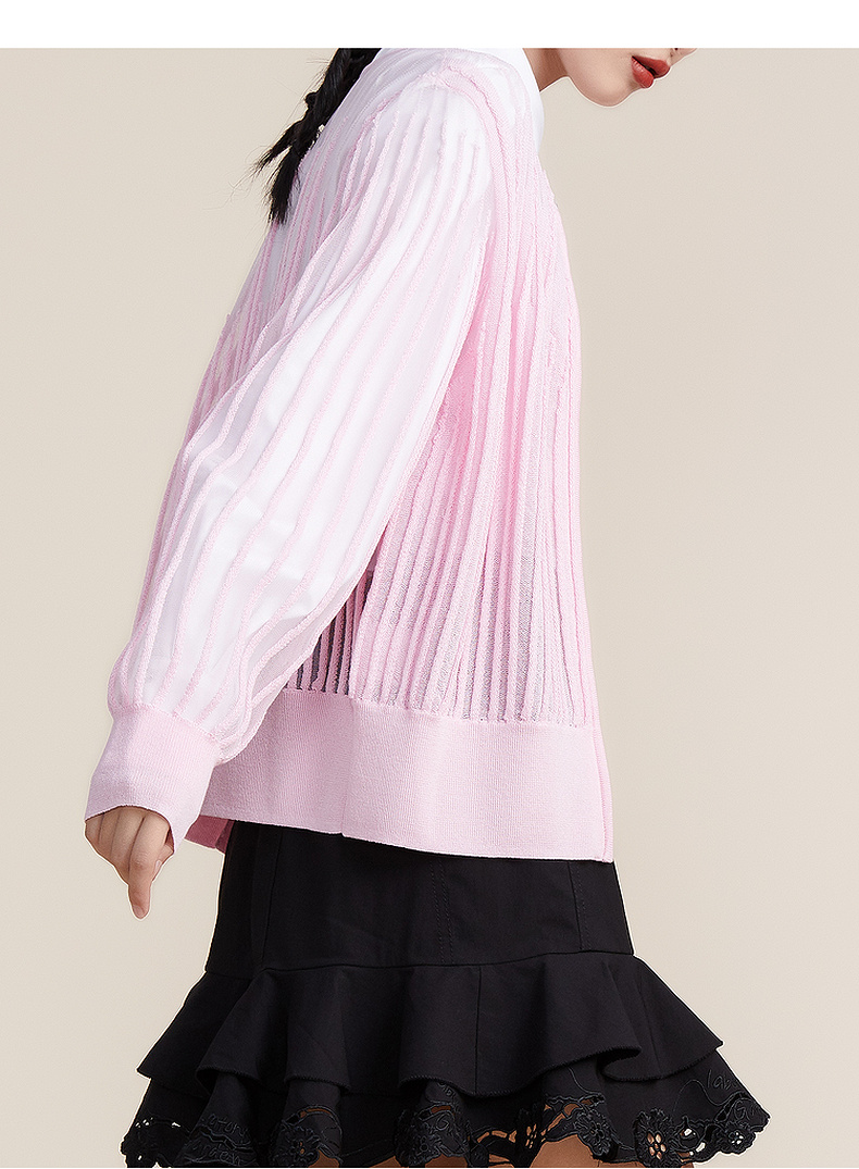 谜底2022春新款简约时尚渐变V领H型长袖套头开织衫女221MZ0343