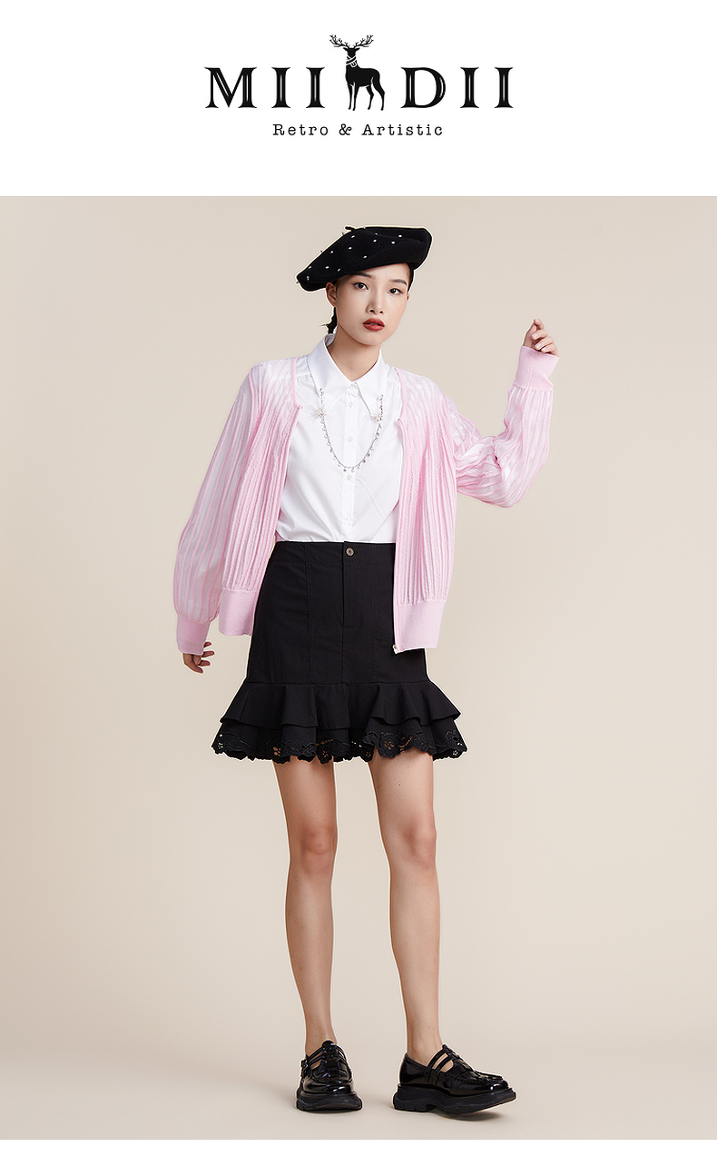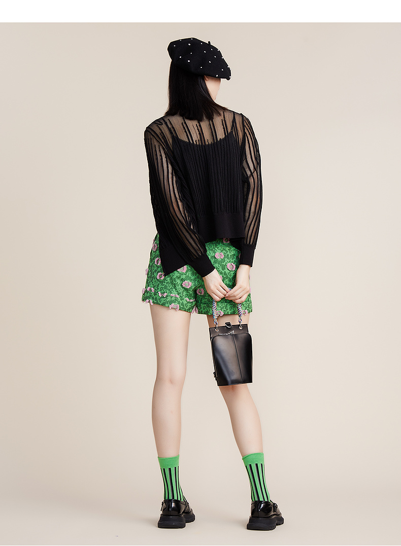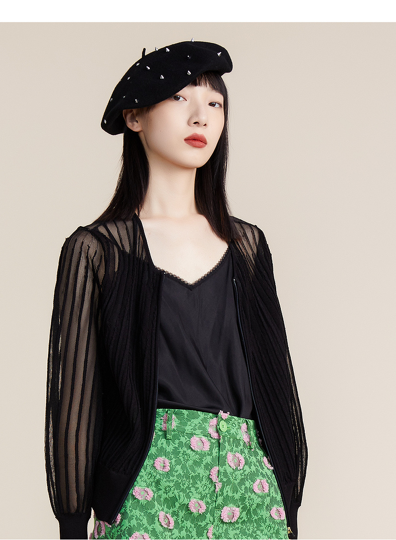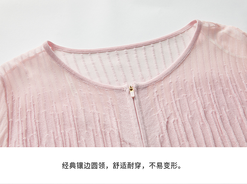 谜底2022春新款简约时尚渐变V领H型长袖套头开织衫女221MZ0343