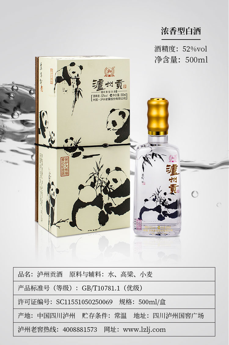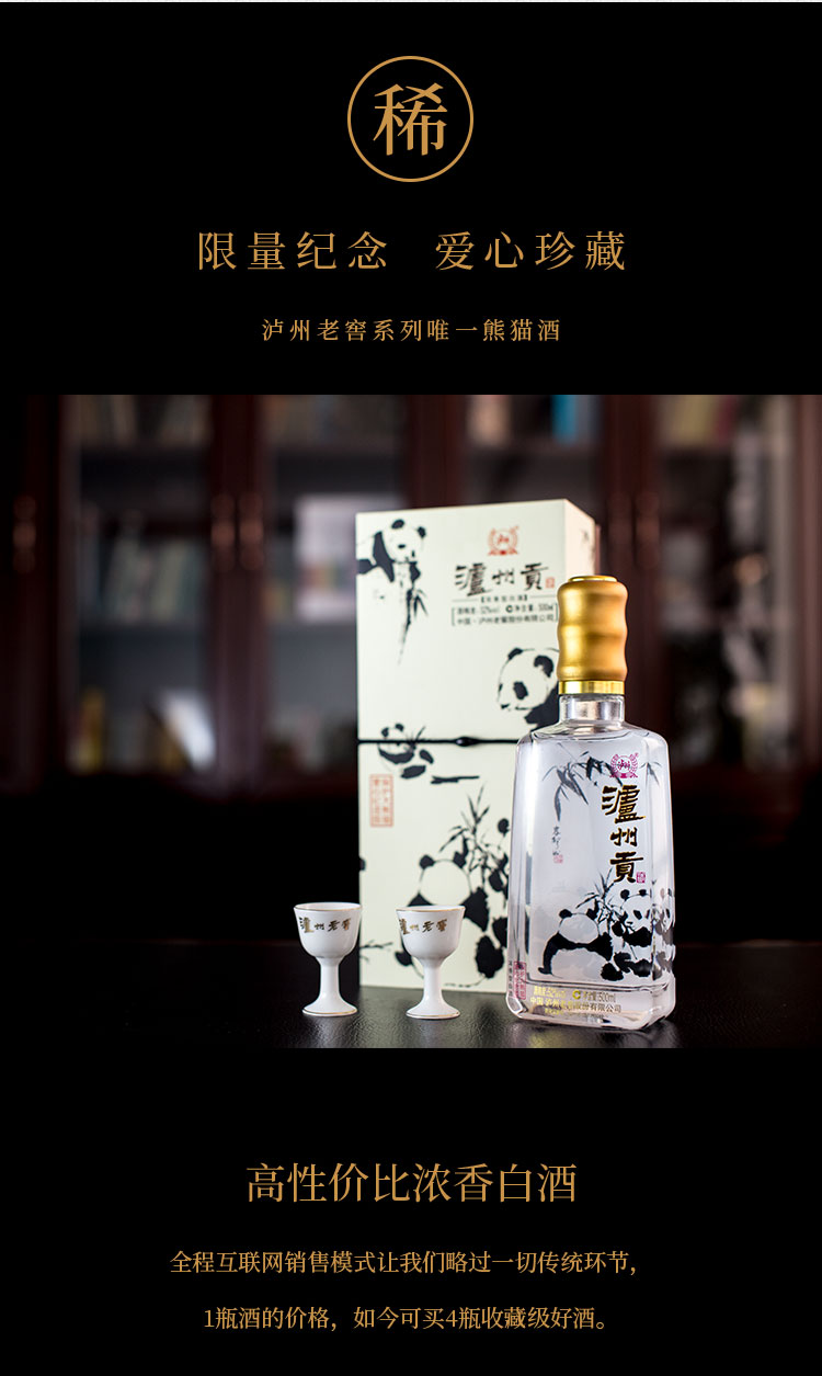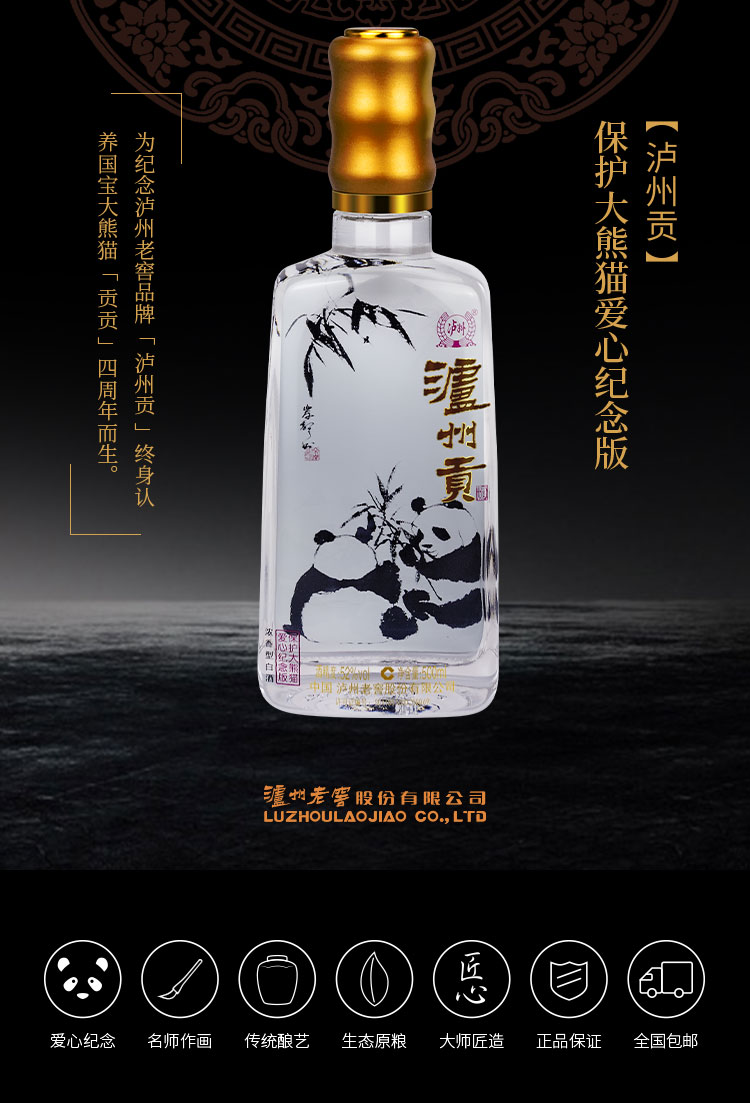 泸州贡认养大熊猫贡贡4周年纪念款52度浓香型白酒x6瓶整箱
