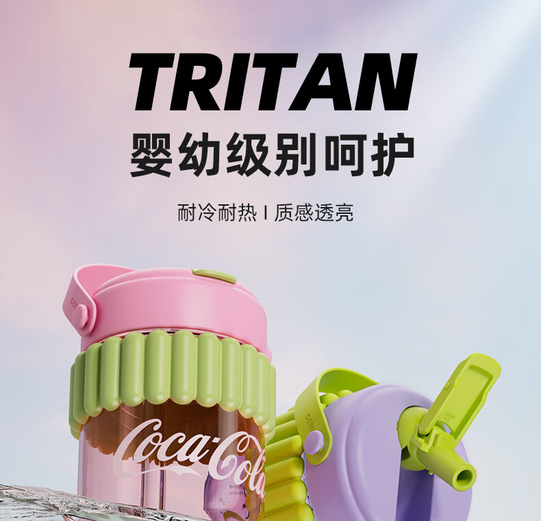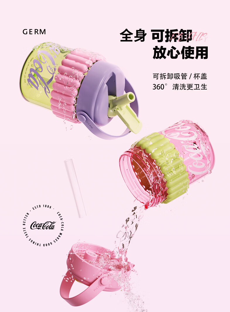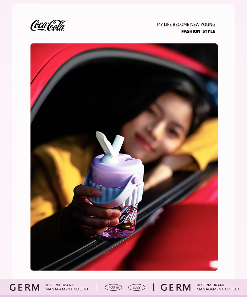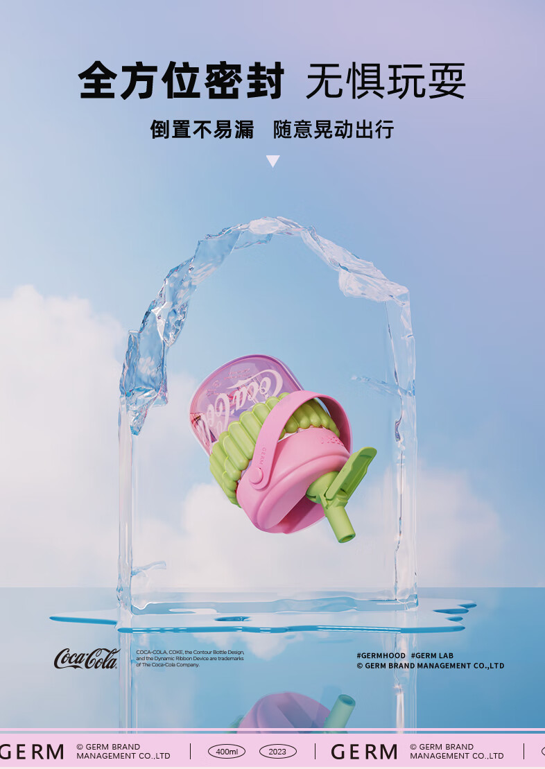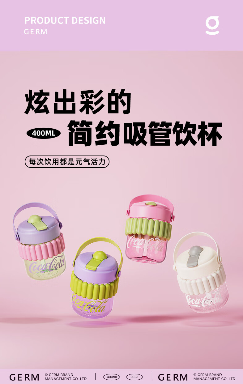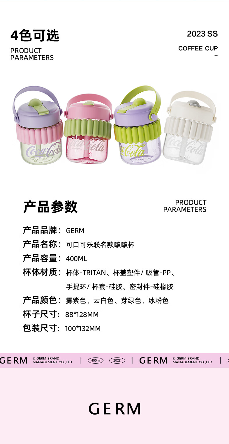 【小家电】格沵(germ)可口可乐联名水杯Tritan高颜值女士防漏耐高温吸管杯子便携塑料杯 云白400ML【啵啵杯】HF