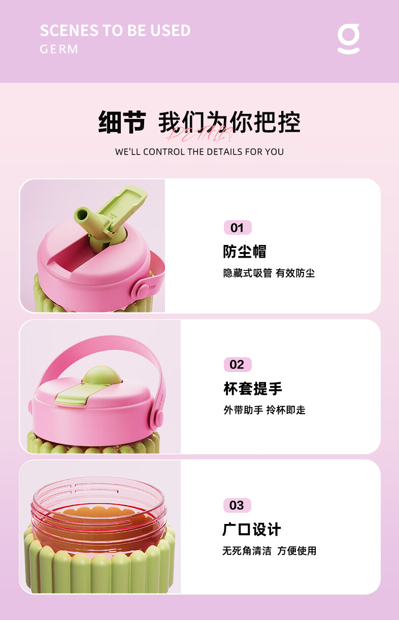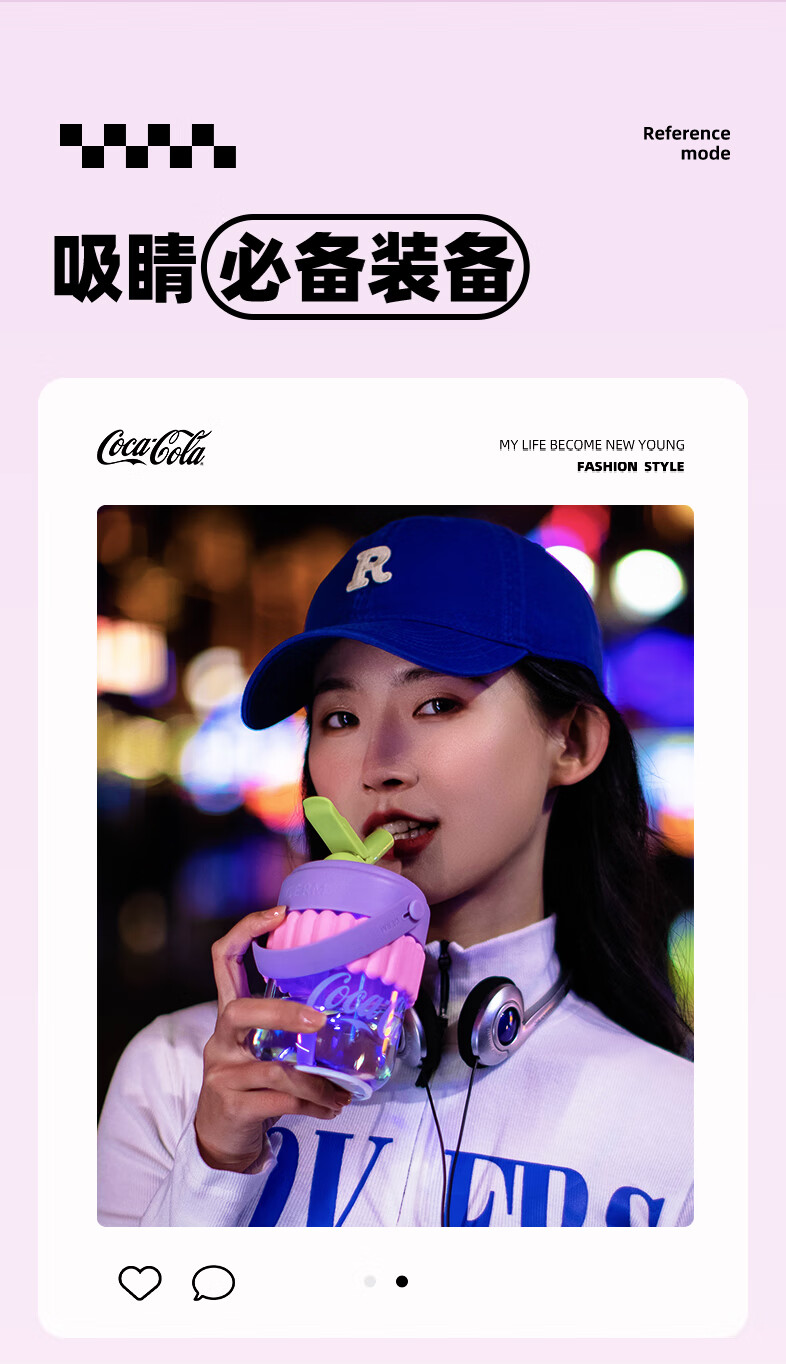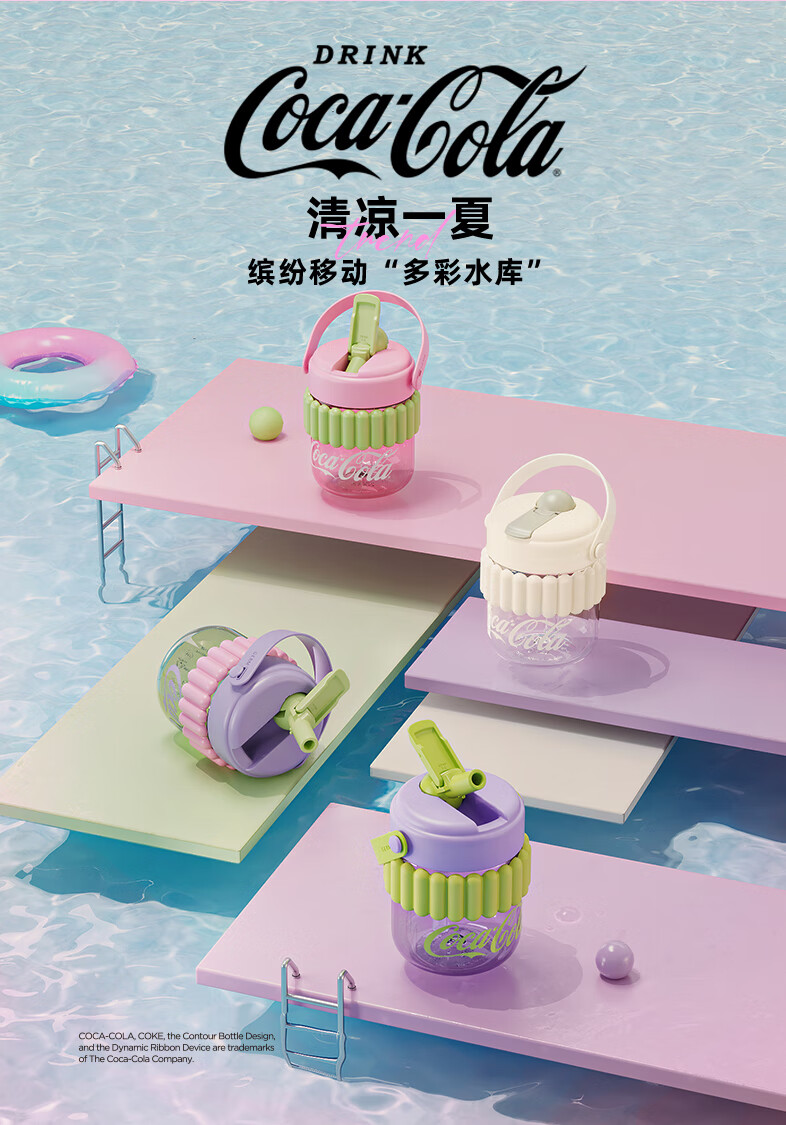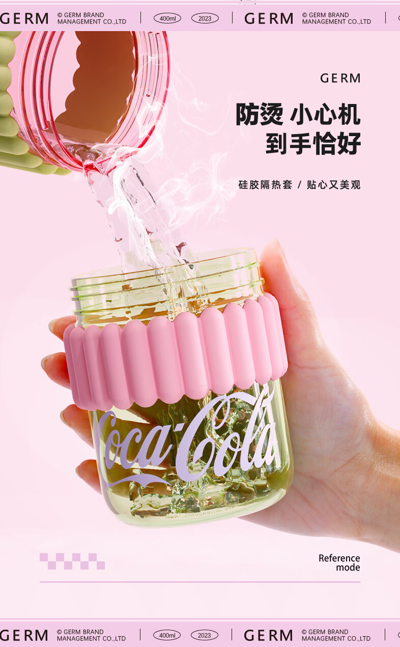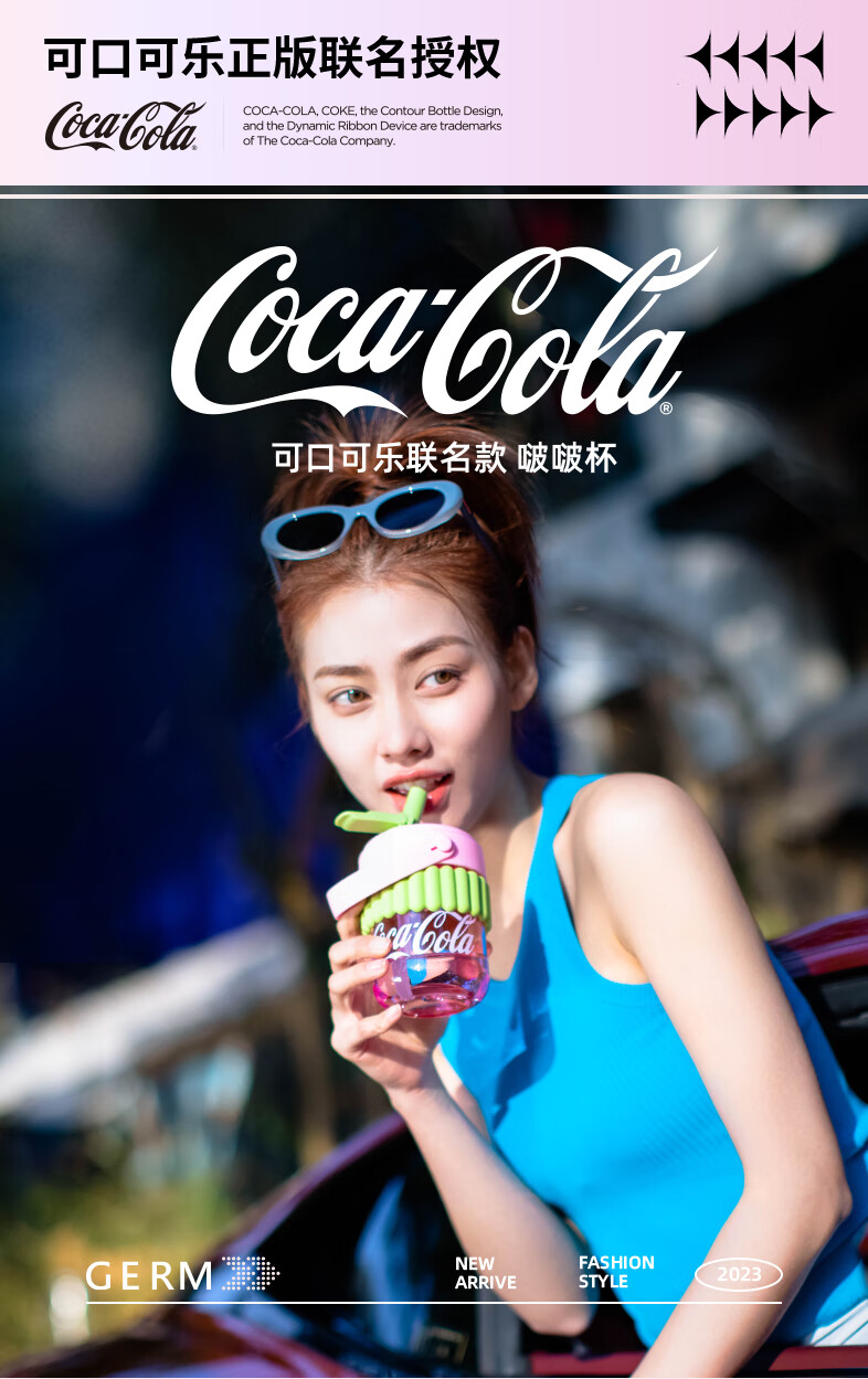 【小家电】格沵(germ)可口可乐联名水杯Tritan高颜值女士防漏耐高温吸管杯子便携塑料杯 云白400ML【啵啵杯】HF