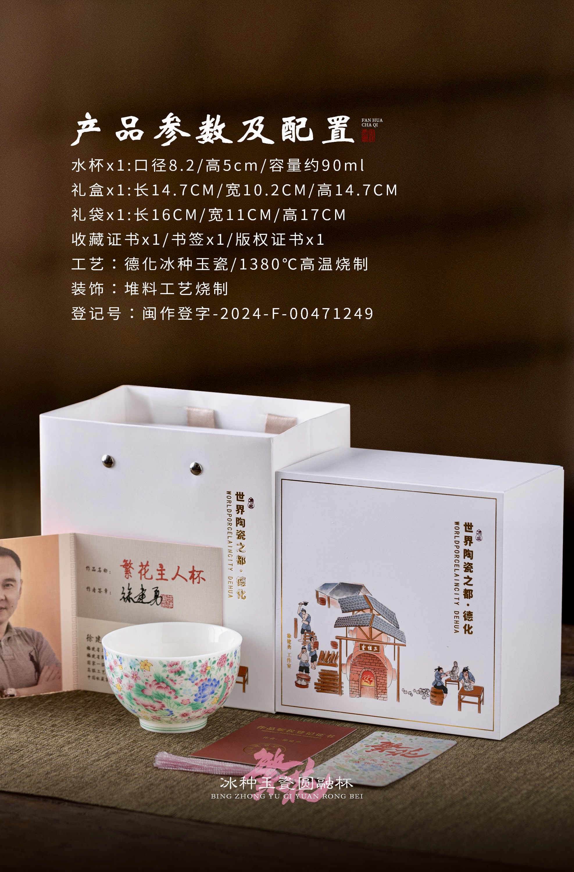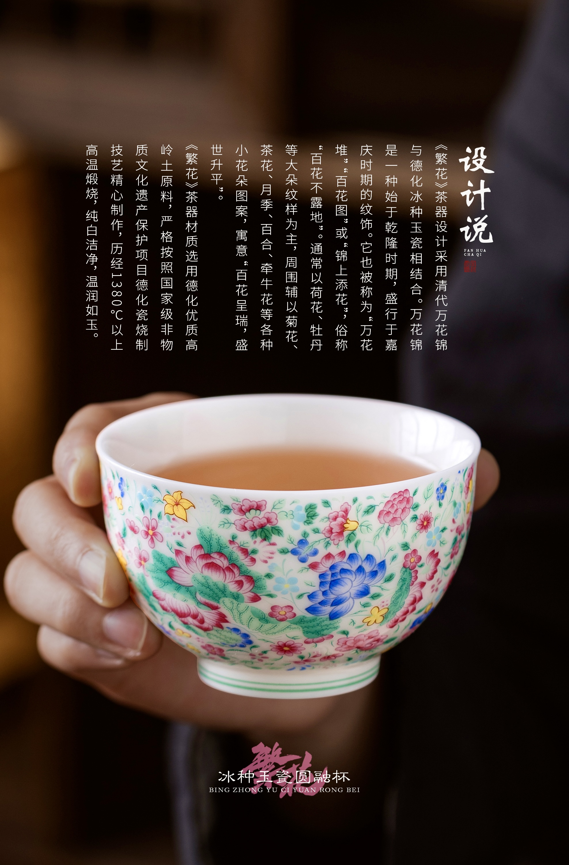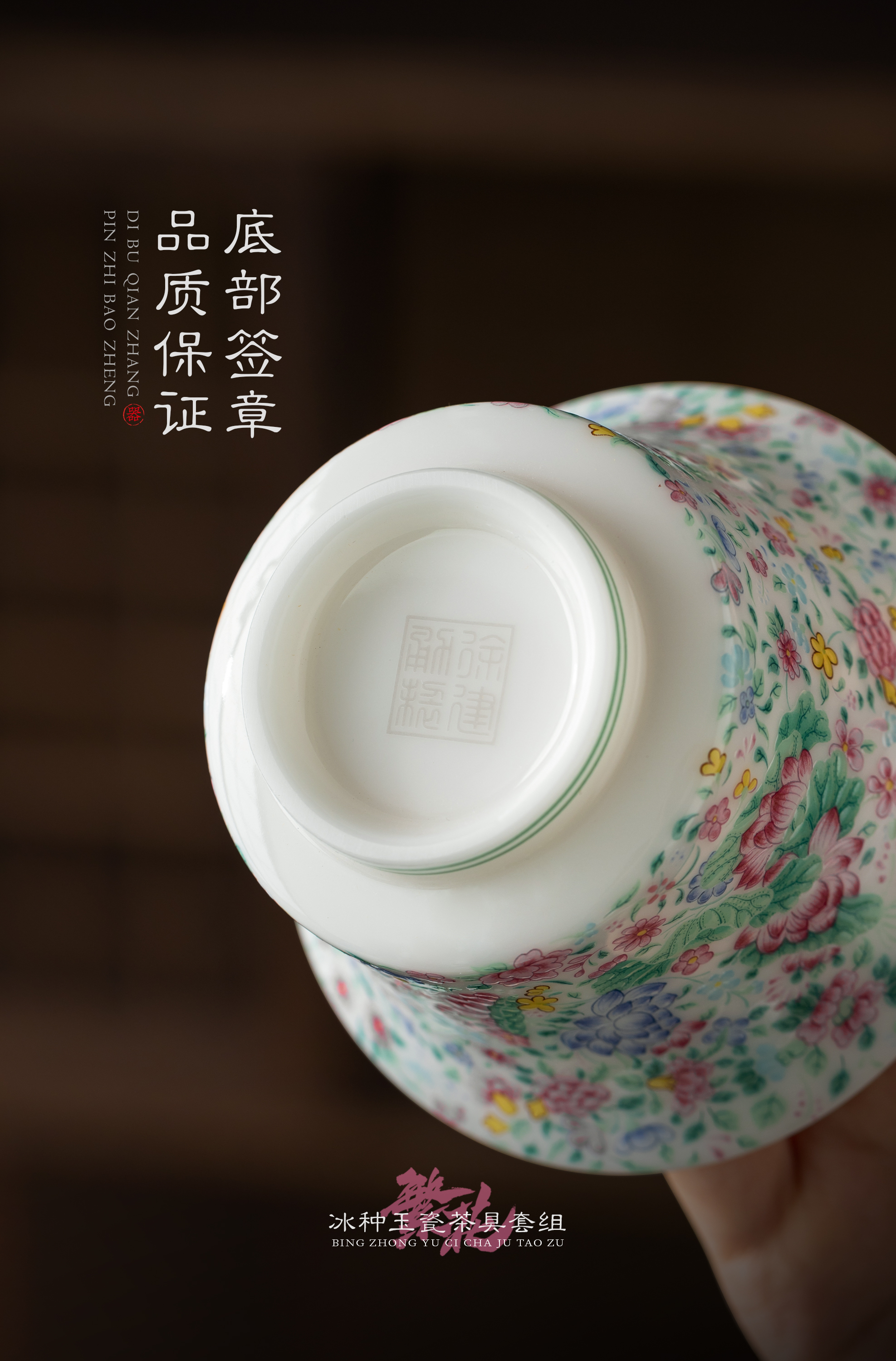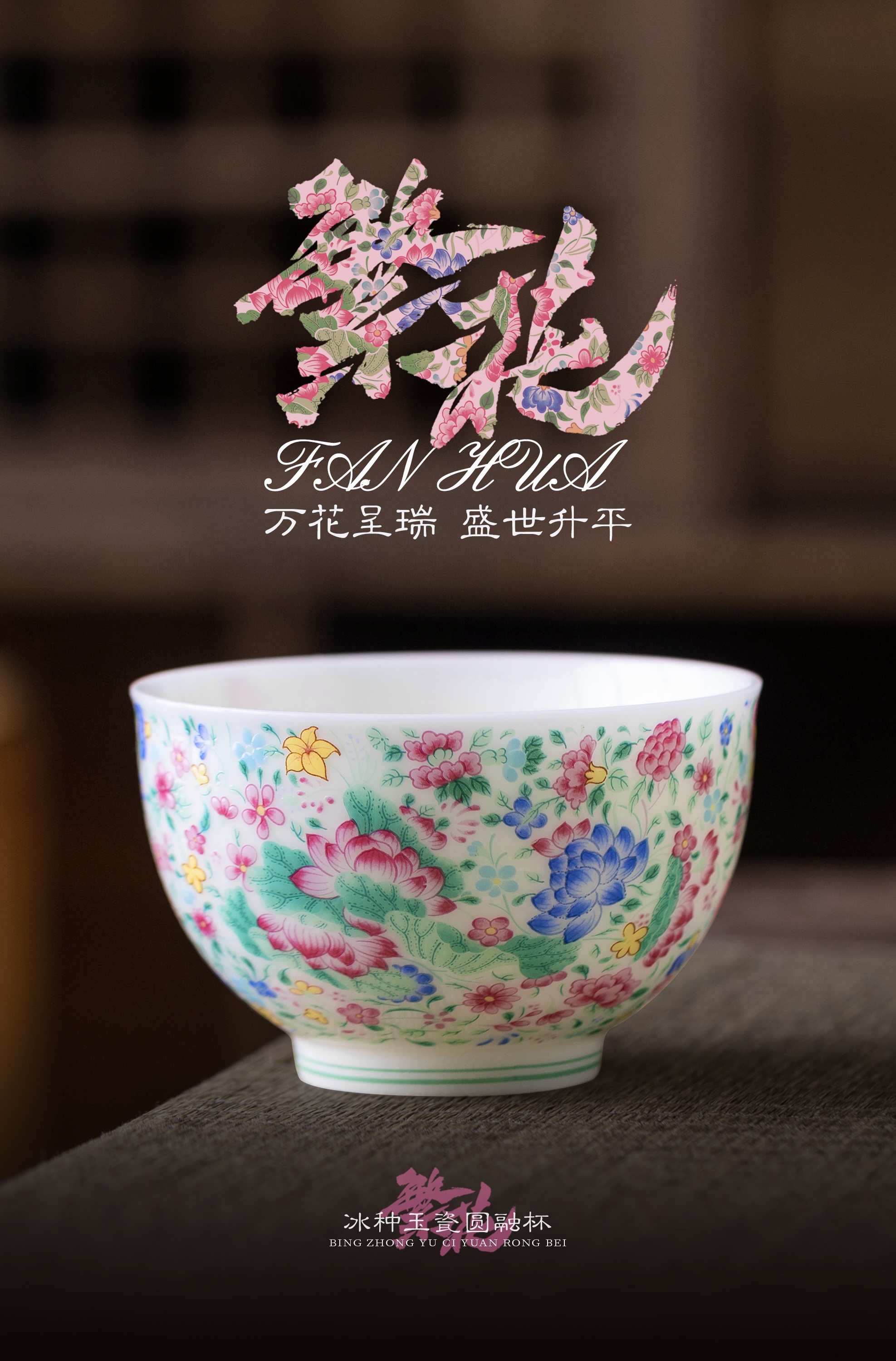 【万花呈瑞 盛世升平】繁花冰种玉瓷茶具套组/圆融杯/莲花杯主人杯/咖啡杯 徐建勇大师签章,繁花争艳 推感立体 迎光透亮,精美包装 gao端豪礼