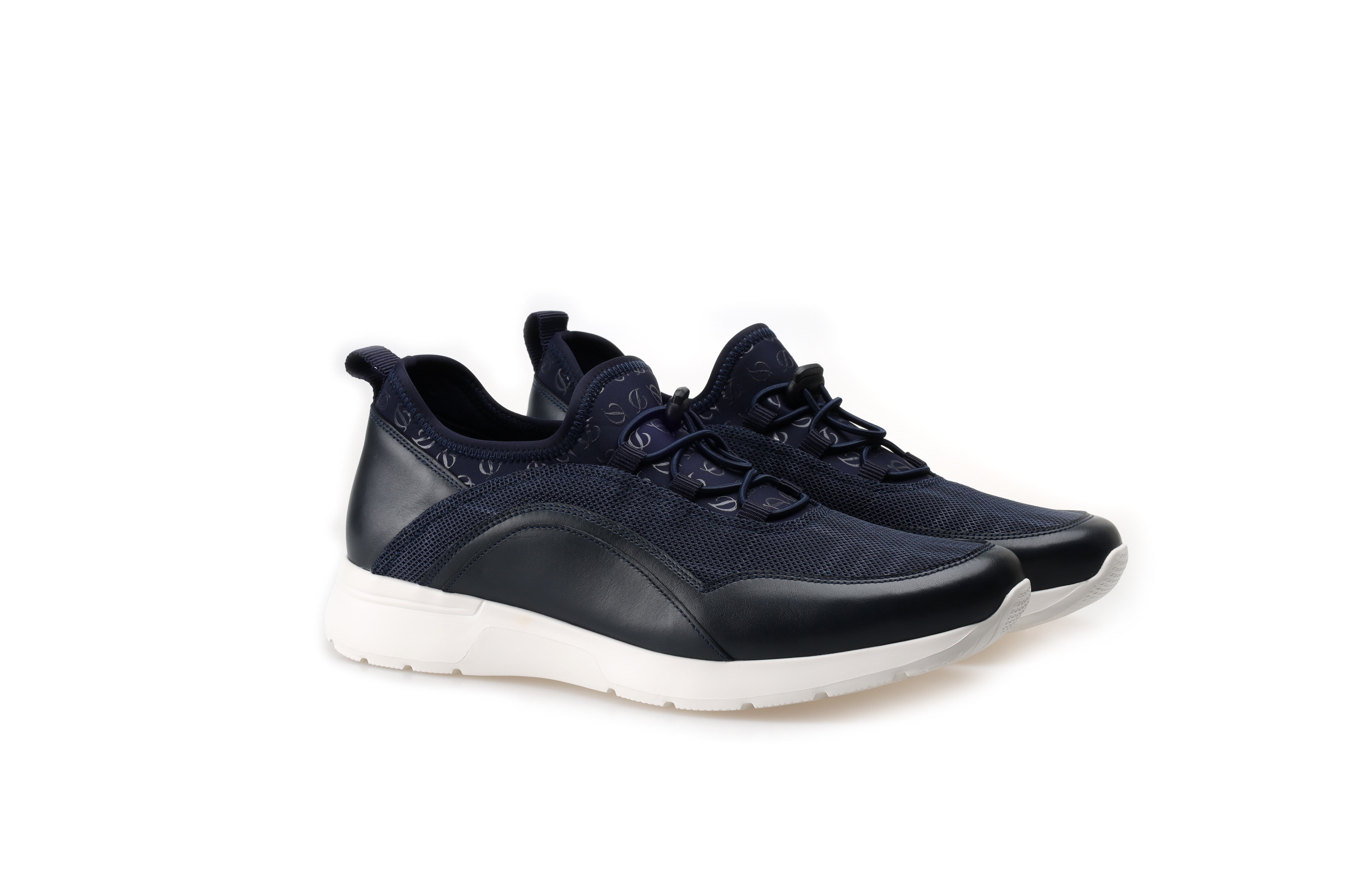 豪麟名鞋奥莱都彭男鞋牛皮革+织物休闲鞋E31211039蓝色 原价3660元