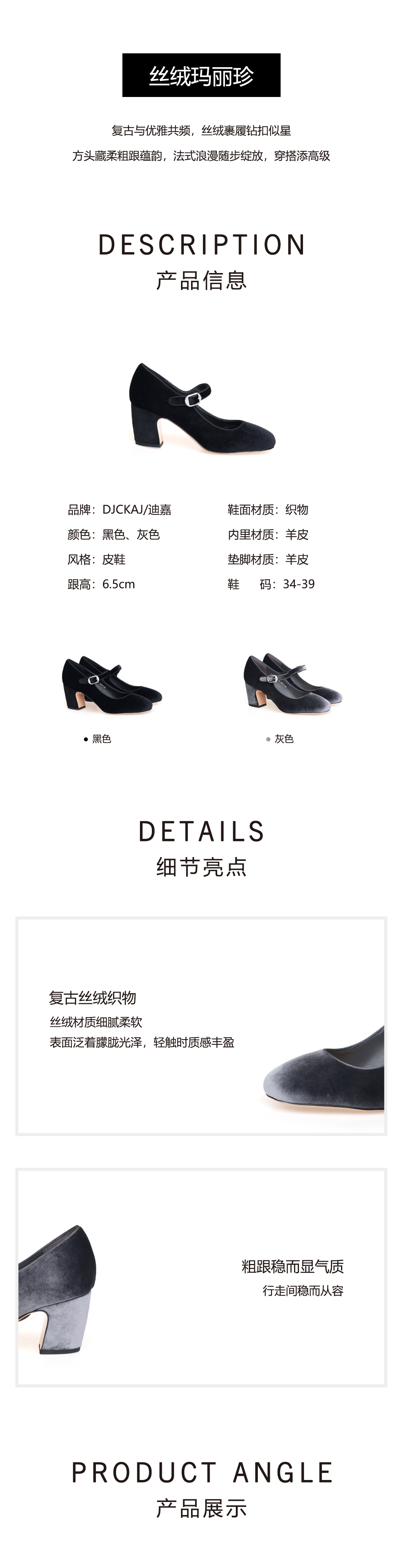 豪麟名鞋迪嘉女鞋玛丽珍鞋织物DJKDA52WP003黑色