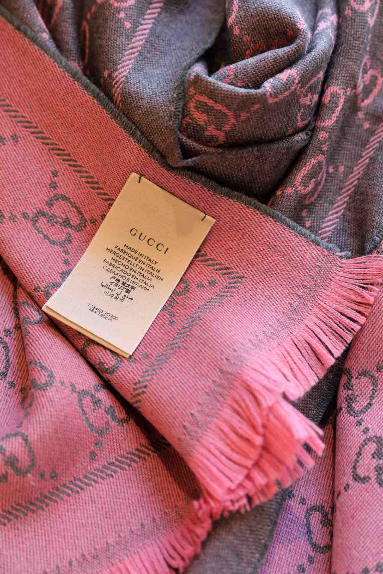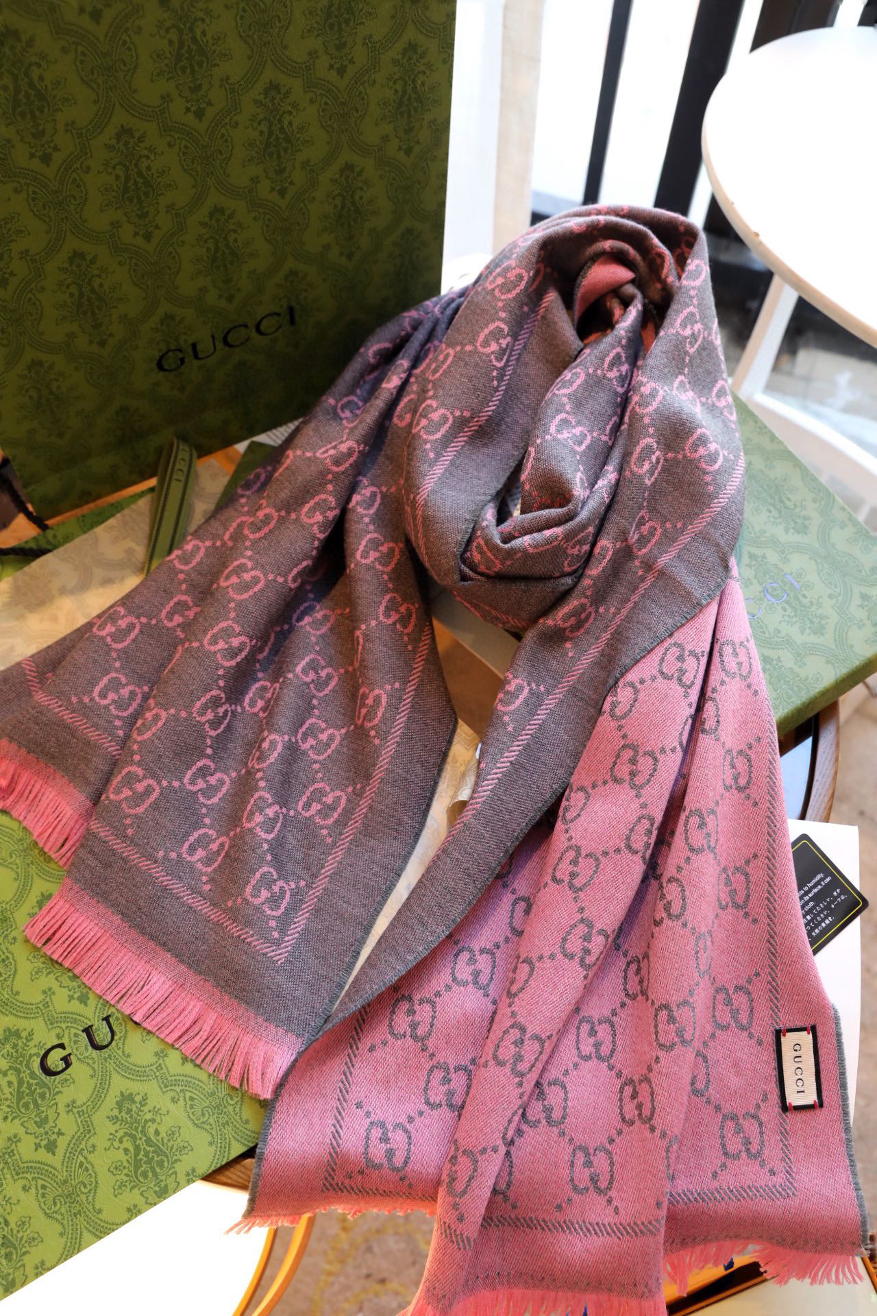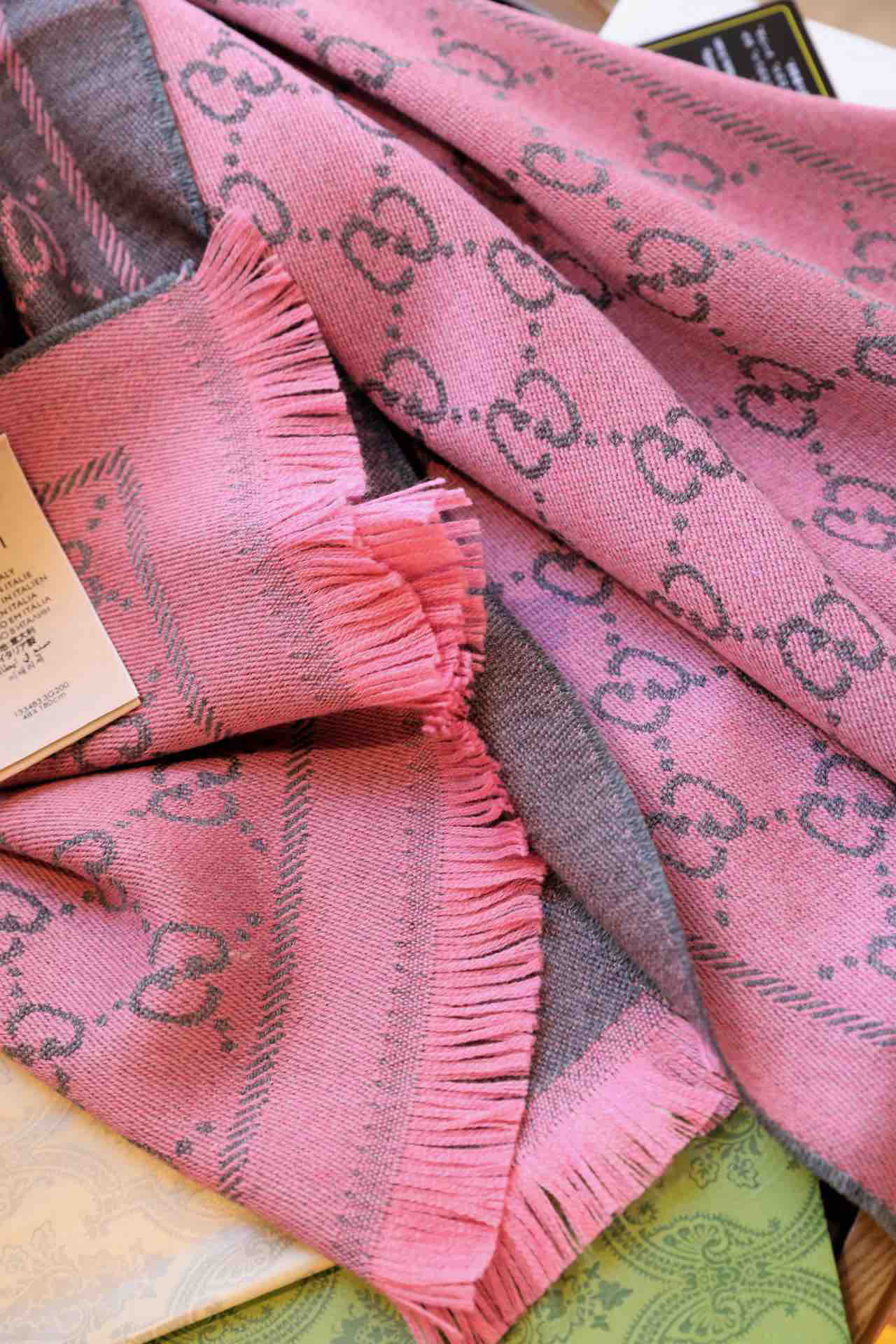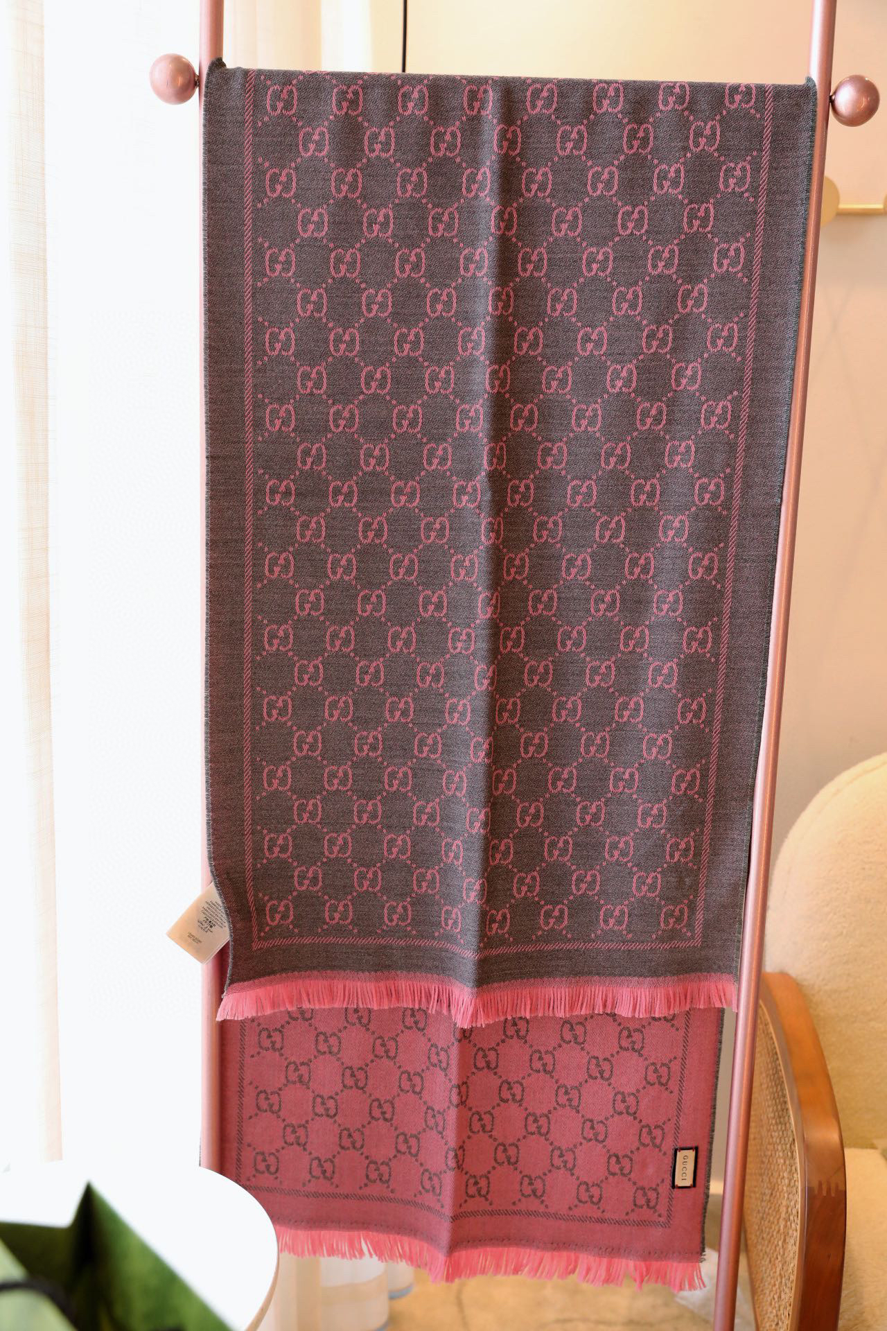 Gucci围巾-灰粉色