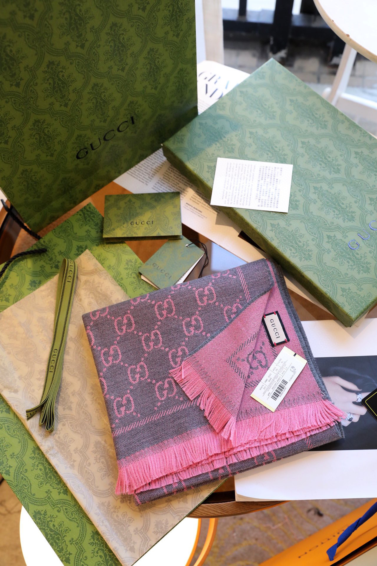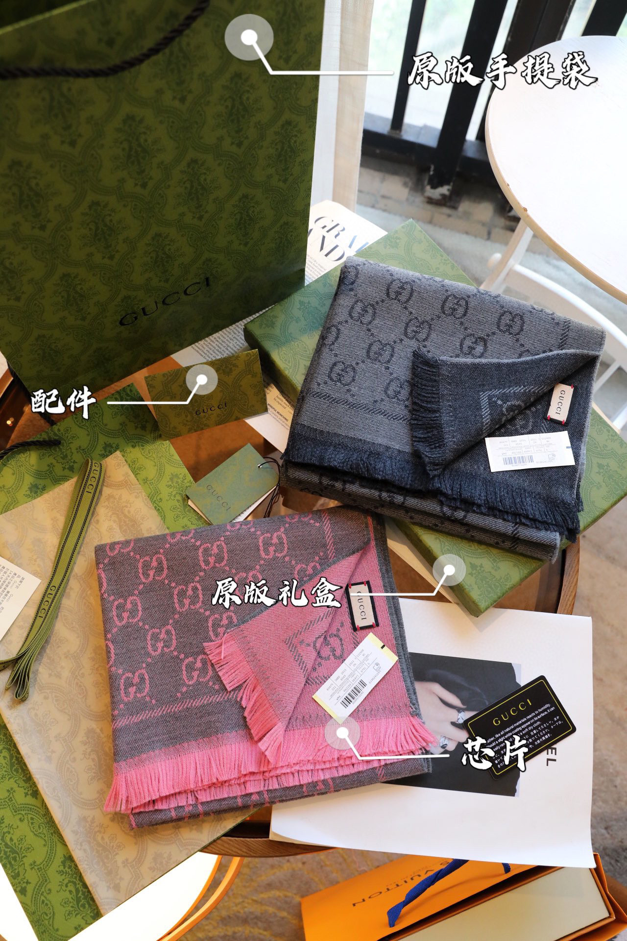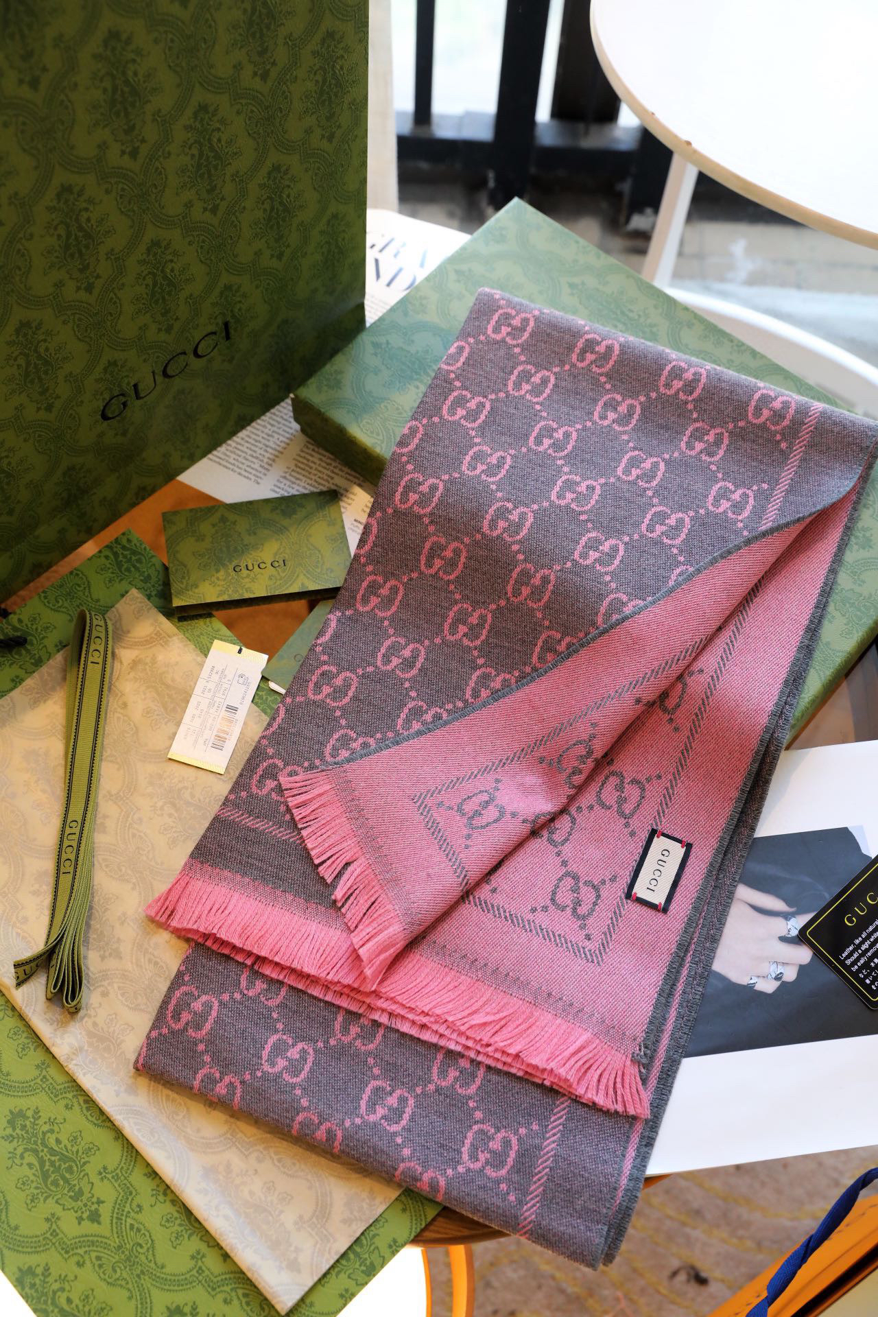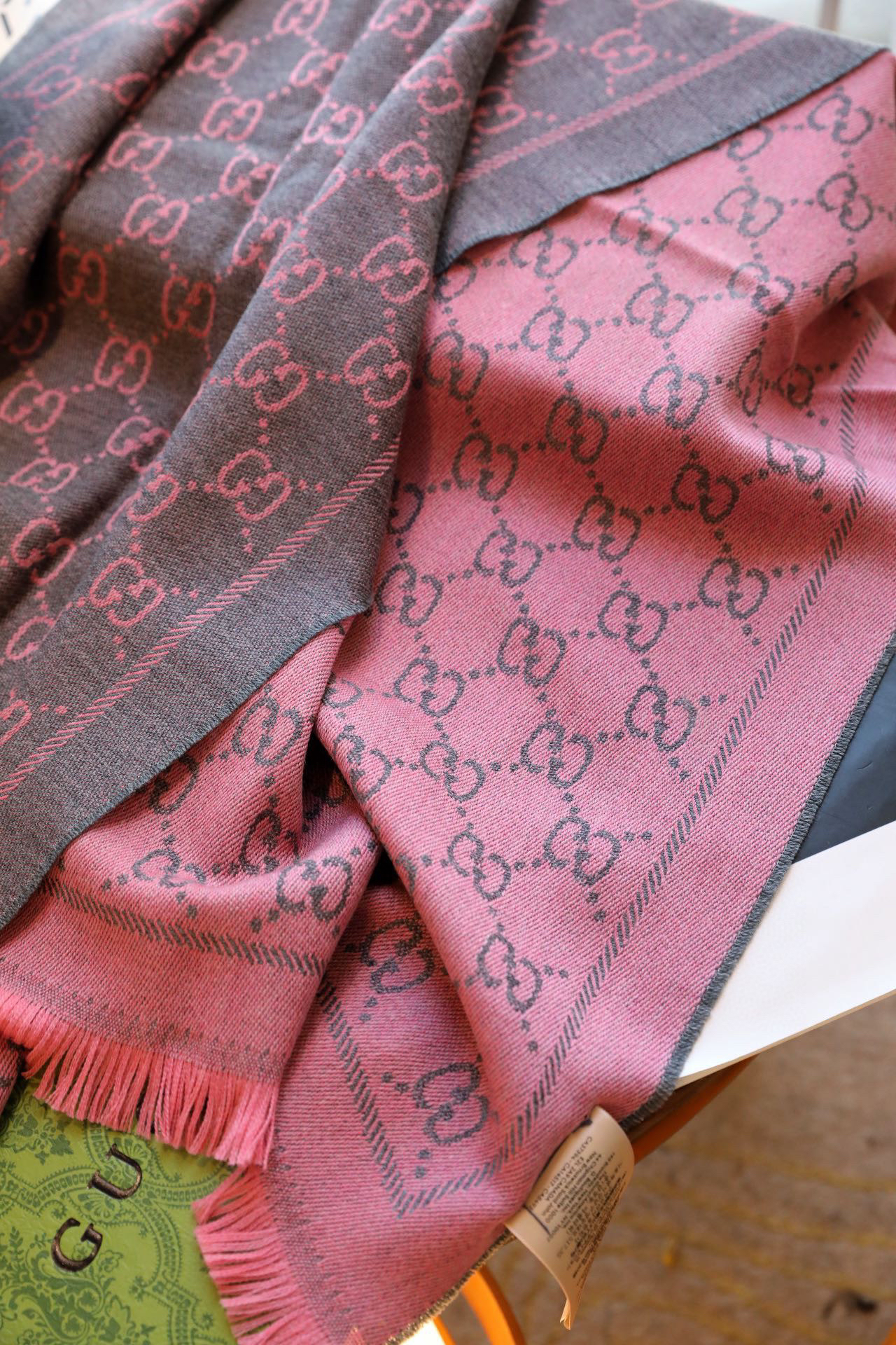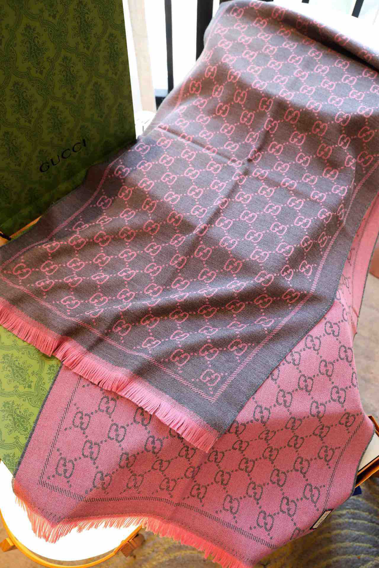 Gucci围巾-灰粉色