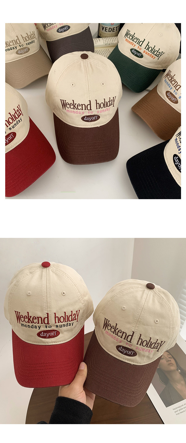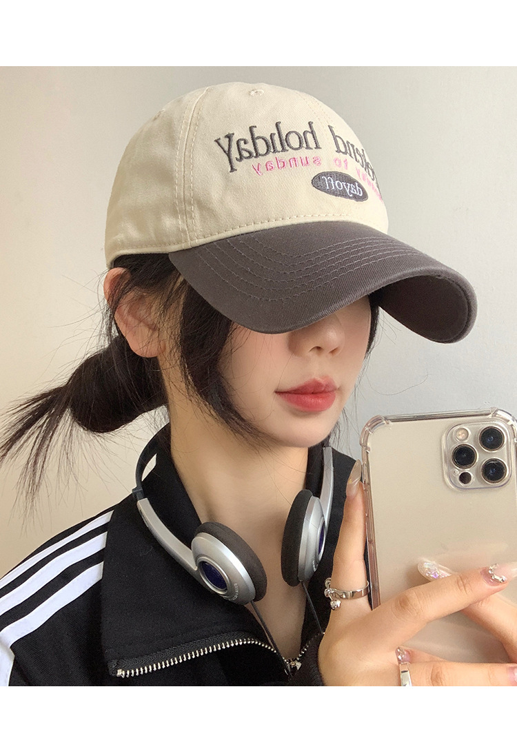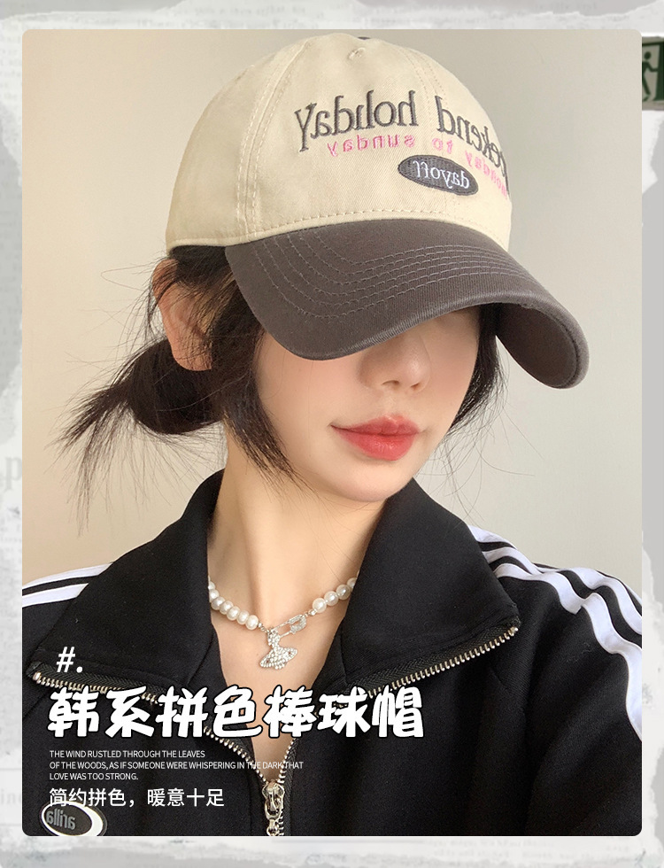 「19.9到手!数款配色」复古拼色棒球帽韩版显脸小软顶鸭舌帽遮阳成人防晒大头围檐配饰