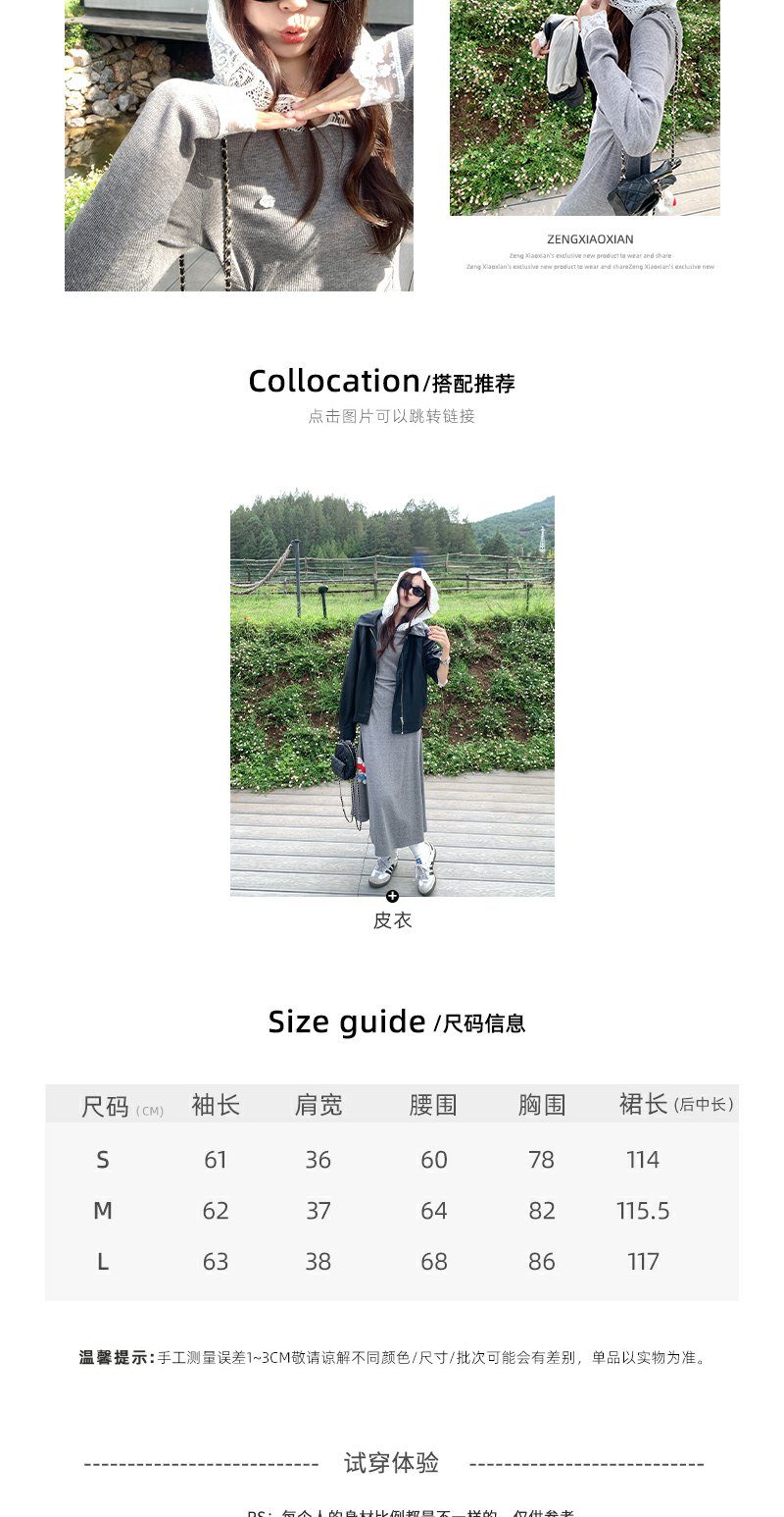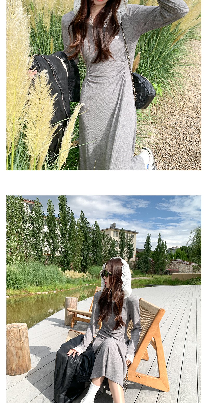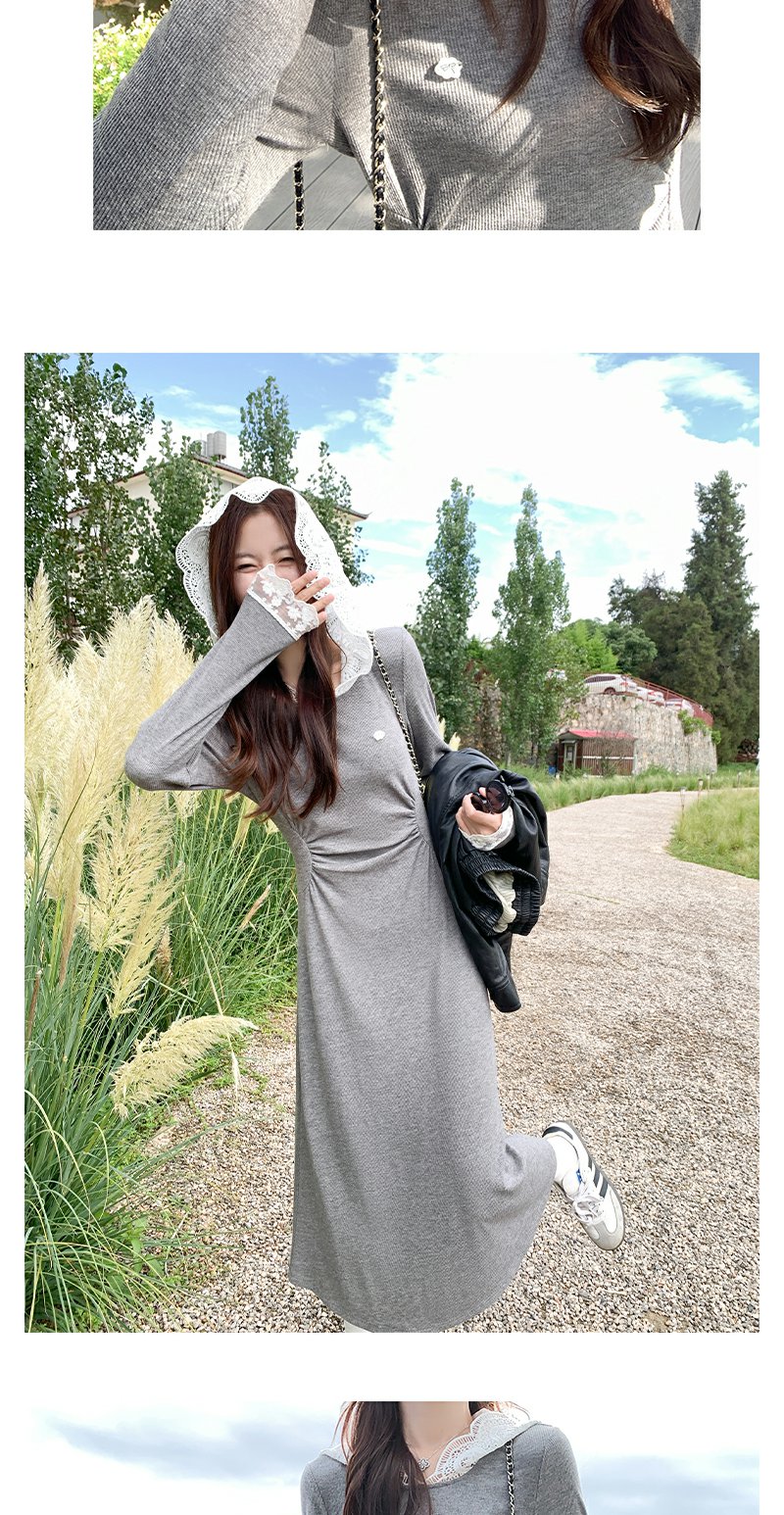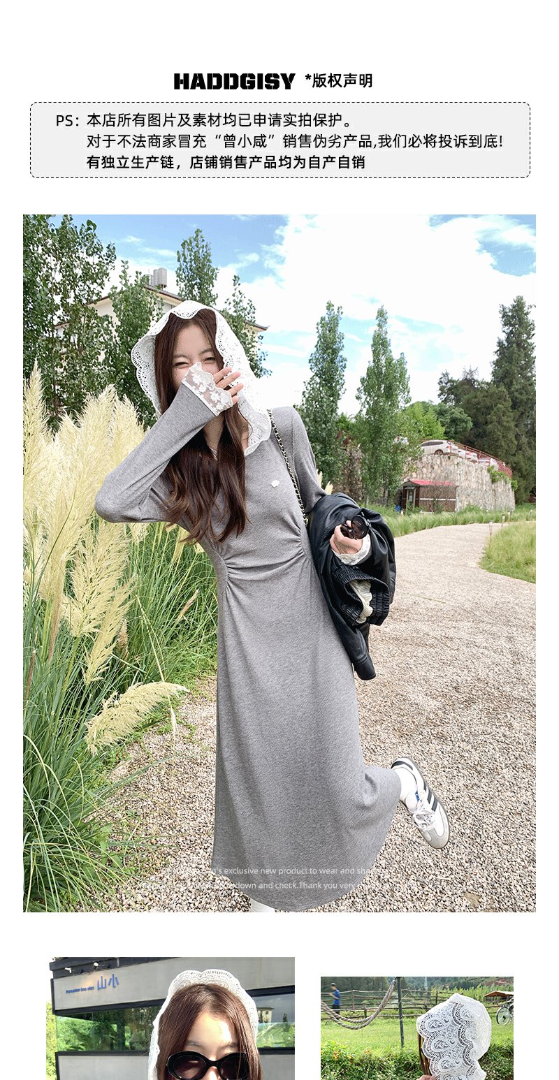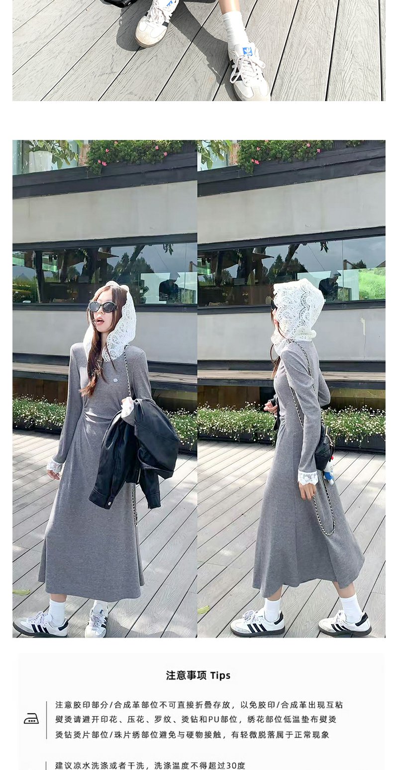 【179元任选2件】现货!韩系修身连帽拼蕾丝连衣裙