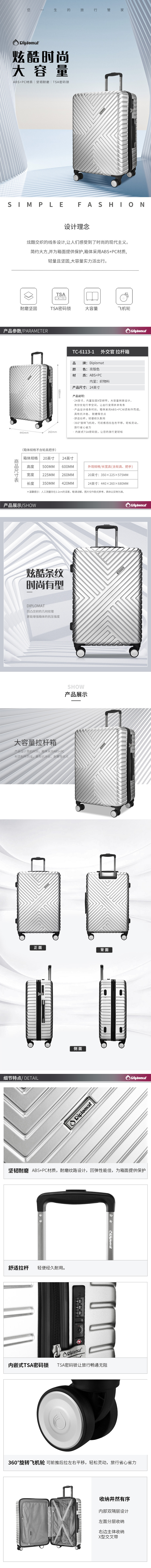 Diplomat外交官行李箱24英寸轻盈旅行密码箱 亮银色 TC-6113-1
