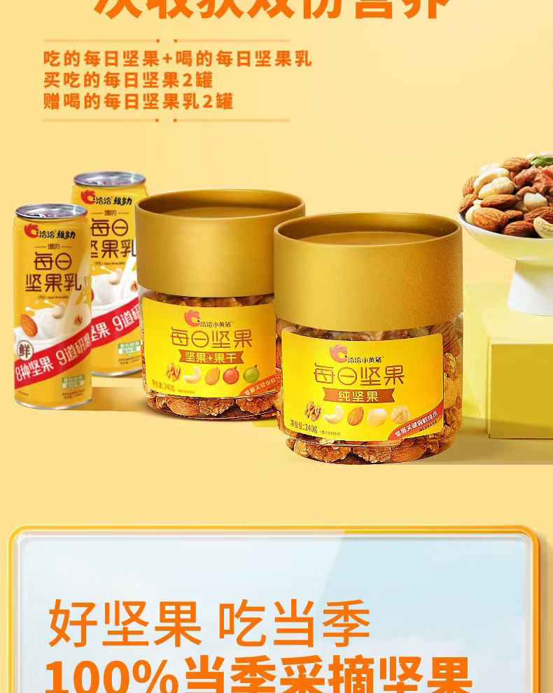 洽洽小黄袋每日坚果双罐装240g*2罐+240ml坚果乳*2罐