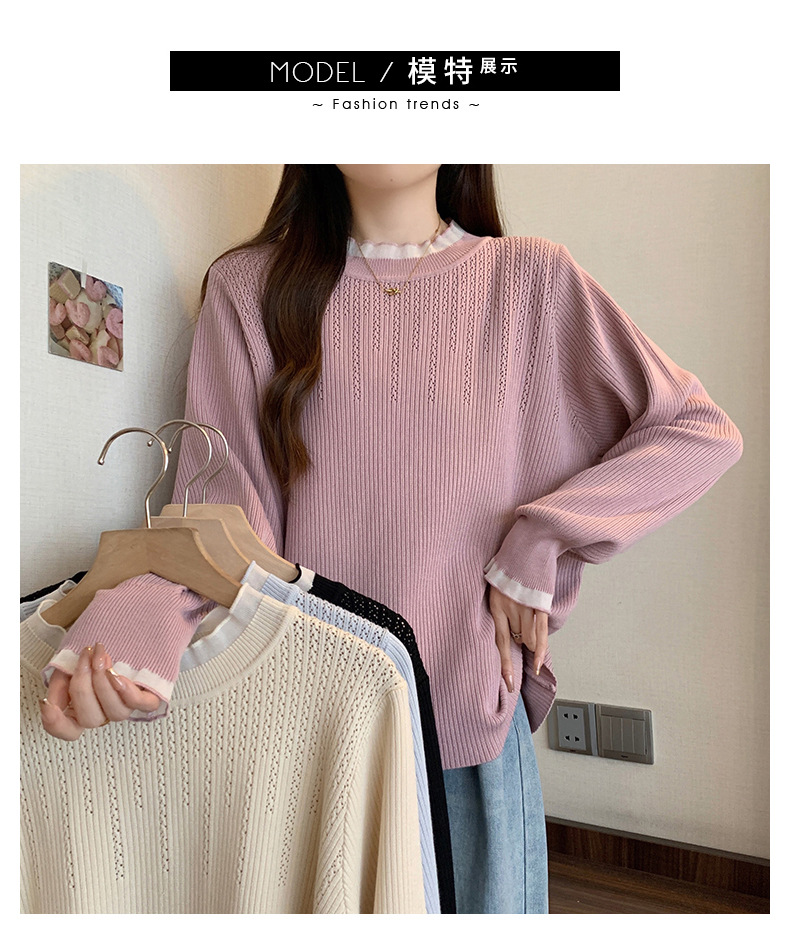 秋冬大码女装针织衫上衣】时尚搭配洋气内搭 宽松百搭长袖打底衫