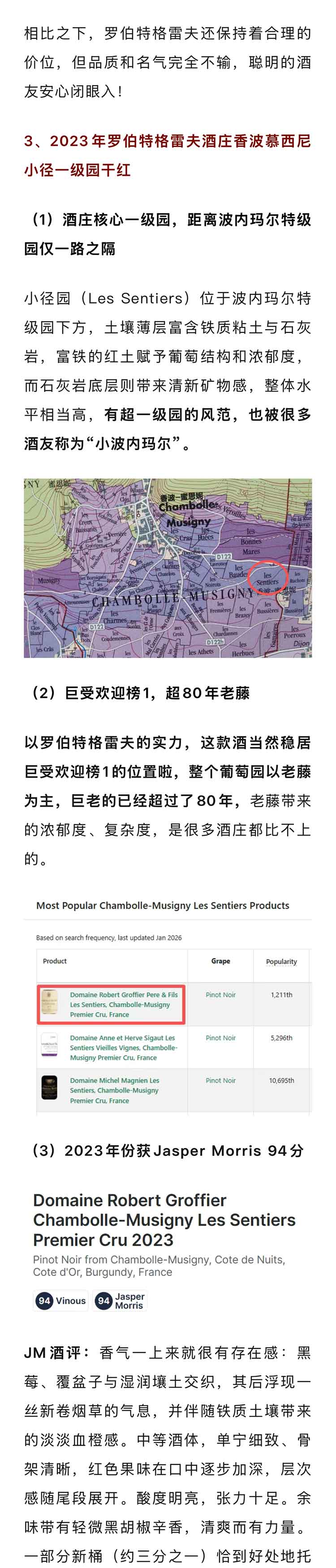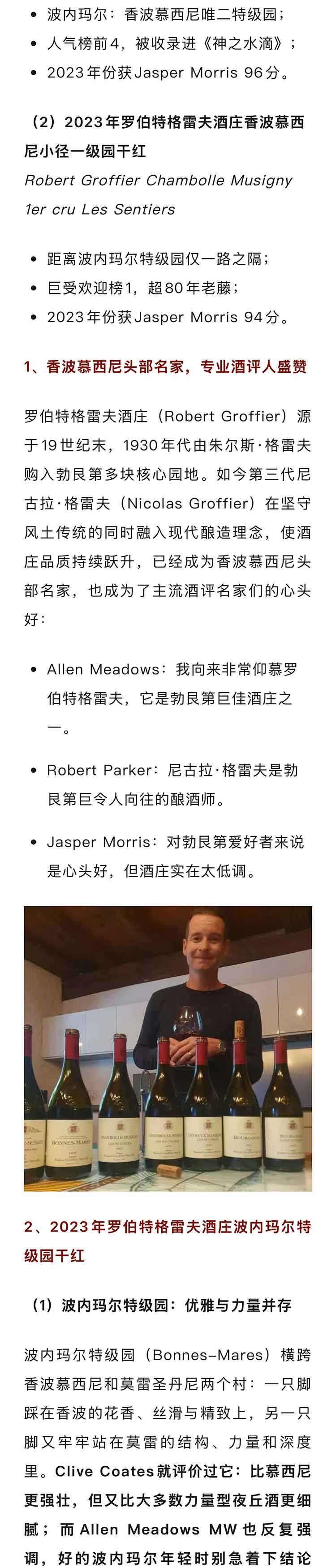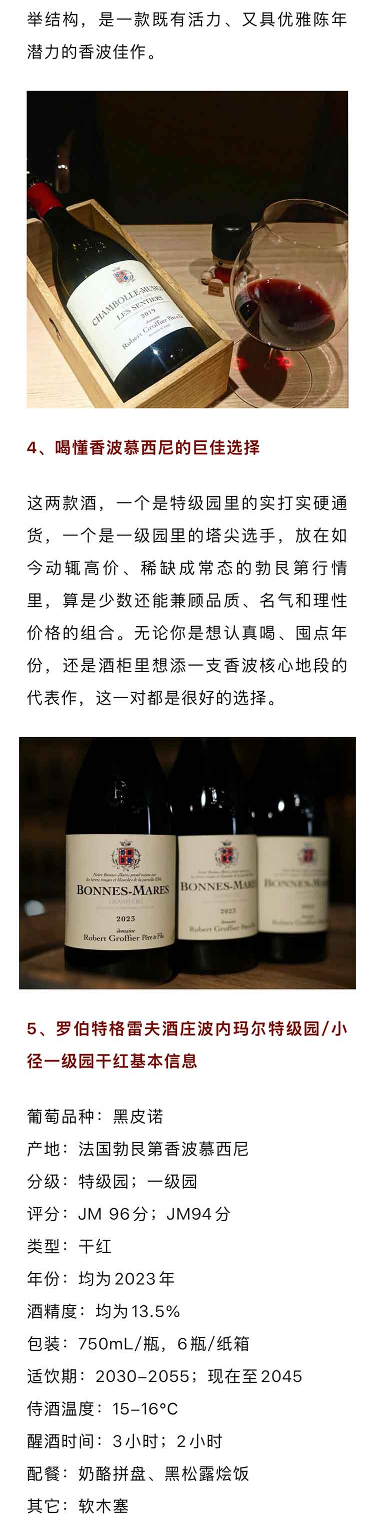 法国勃艮第2023年罗伯特格雷夫酒庄香波慕西尼小径一级园黑皮诺干红
