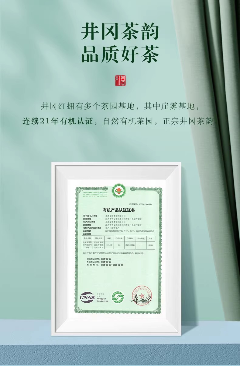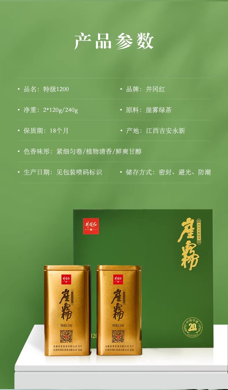 井冈红崖雾特级礼品茶高山有机绿茶240g浓郁板栗香