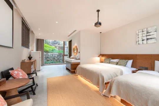 观山家庭房180°观景:45㎡,1张1.8米大床 及 1张1.2米单人床