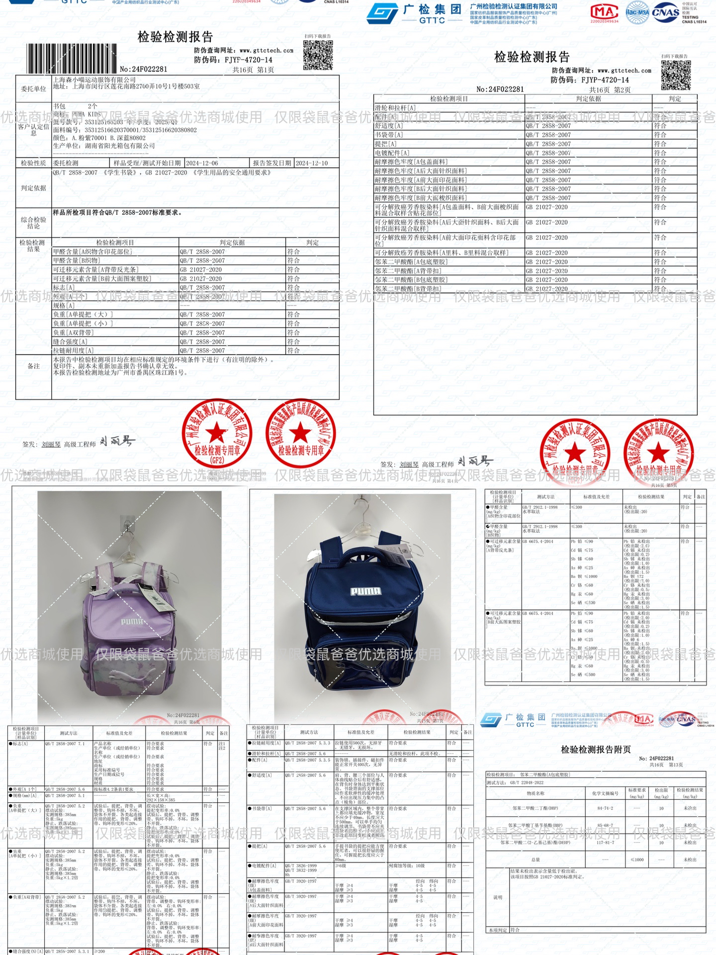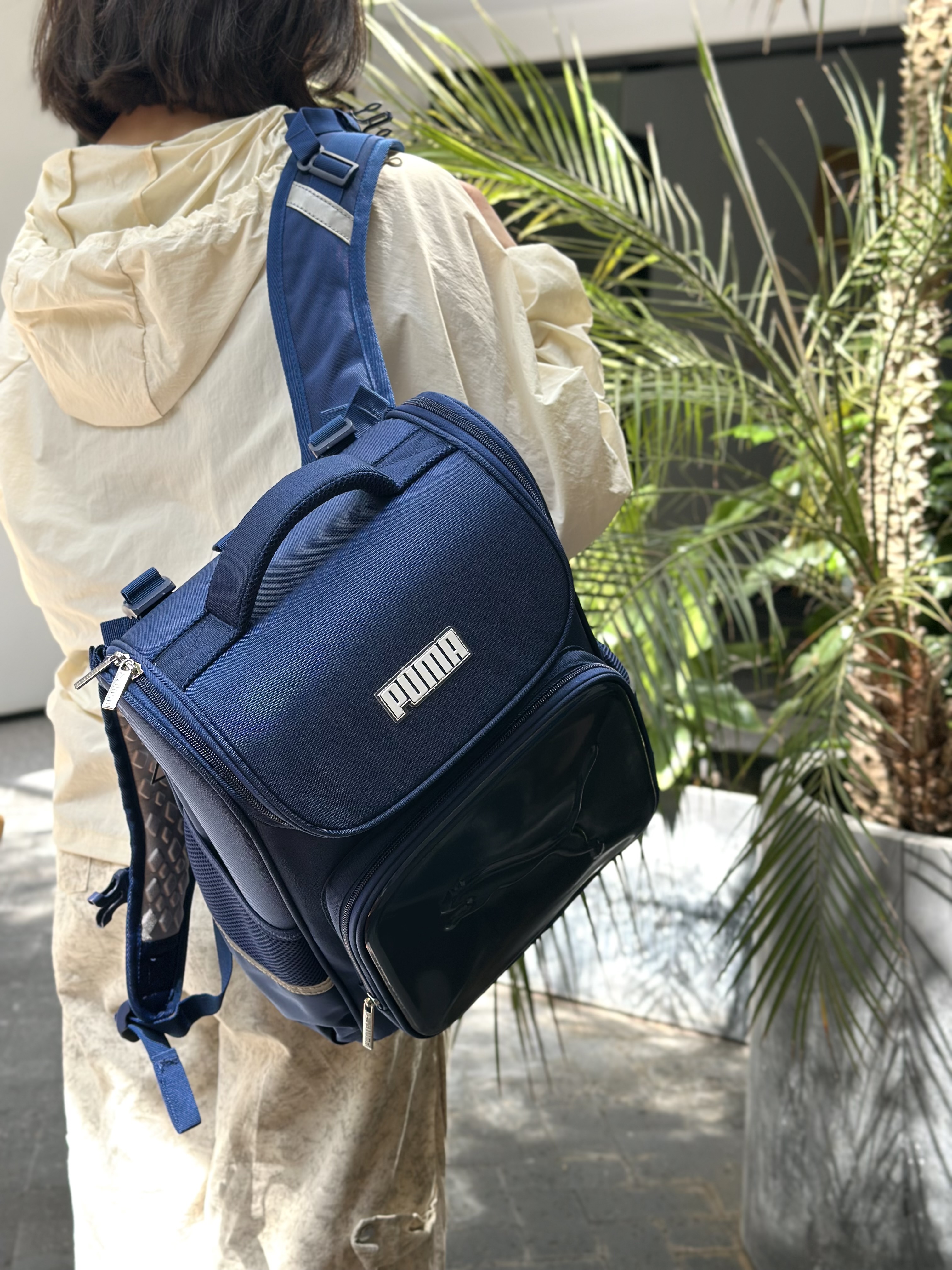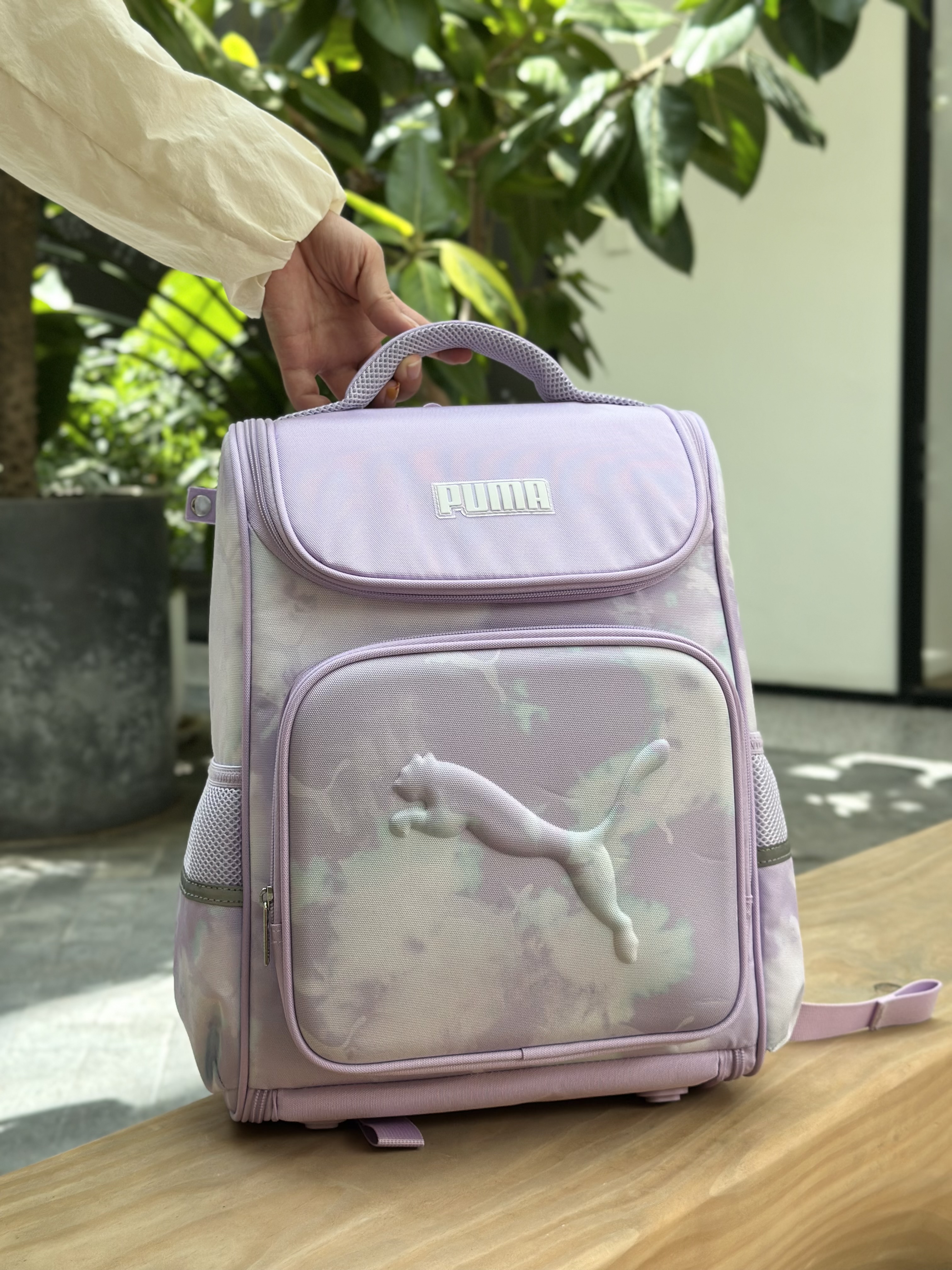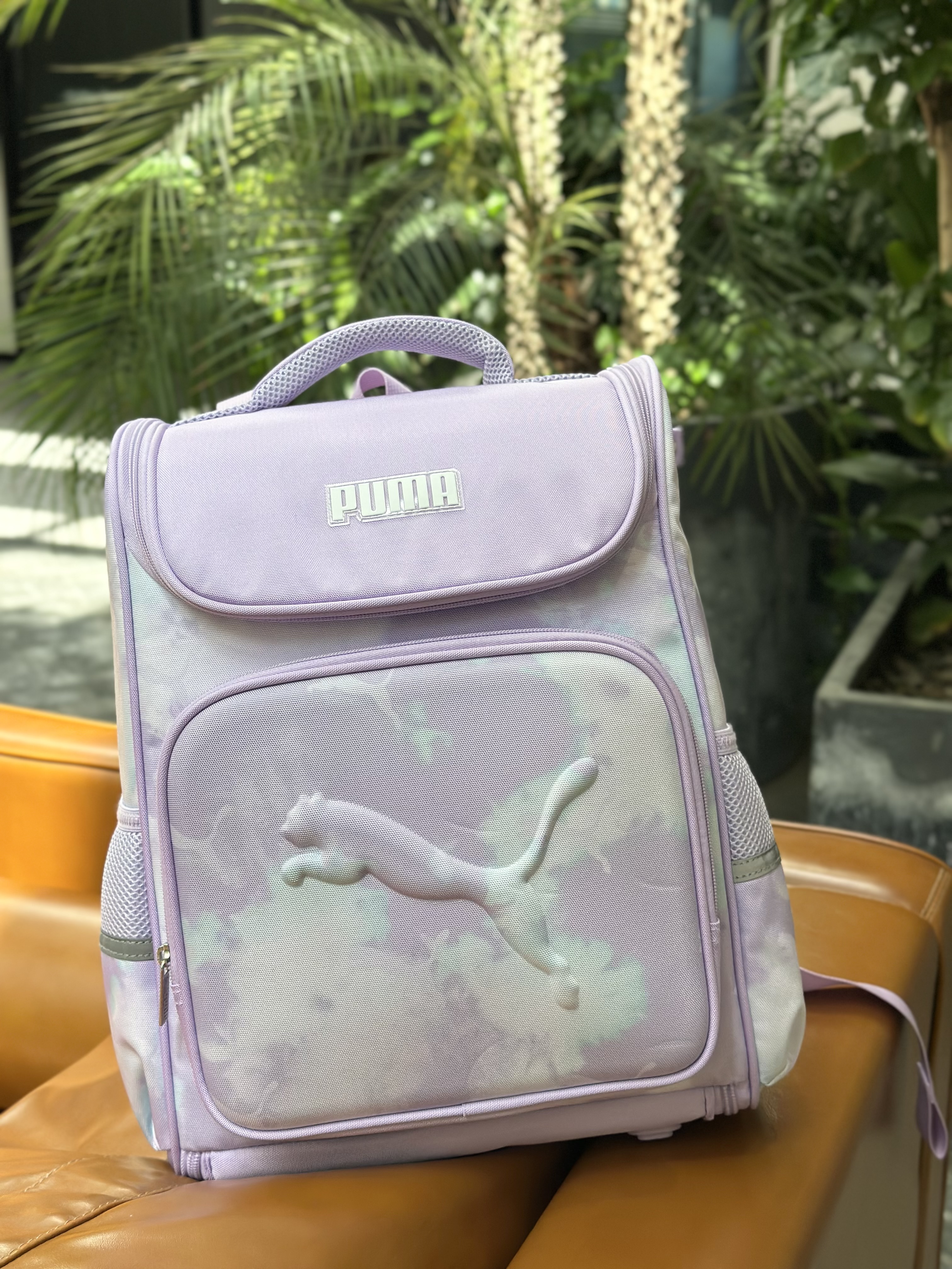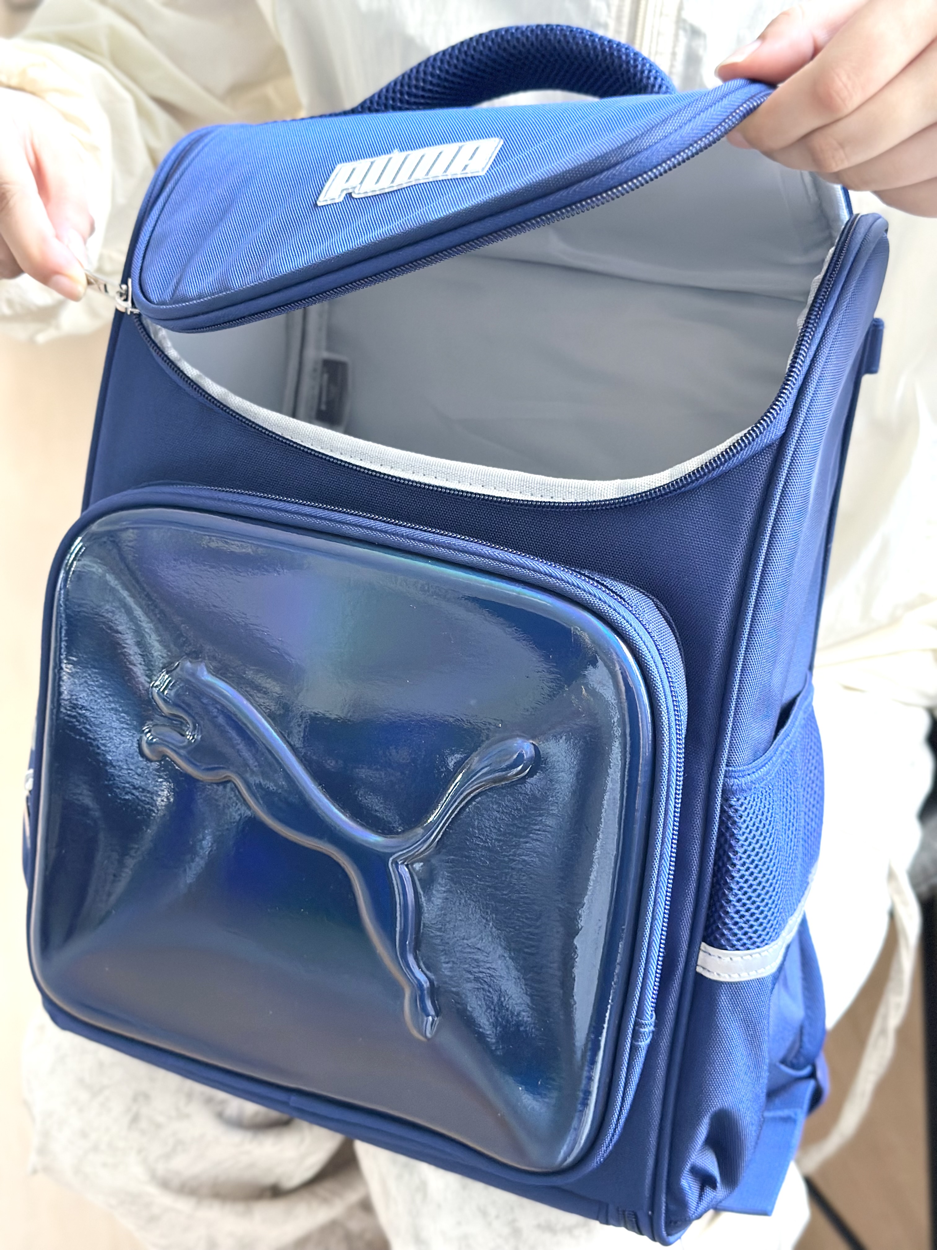 【儿童书包 | PUMA/彪马新款双肩包】 采用防泼水材料,一体式减压双肩包,6s护脊背负更轻松,72颗按摩珠舒缓肩带,肩带加宽加厚分散压力,一片式全开设计,清洗更方便,3M反光条,守护宝贝安全。