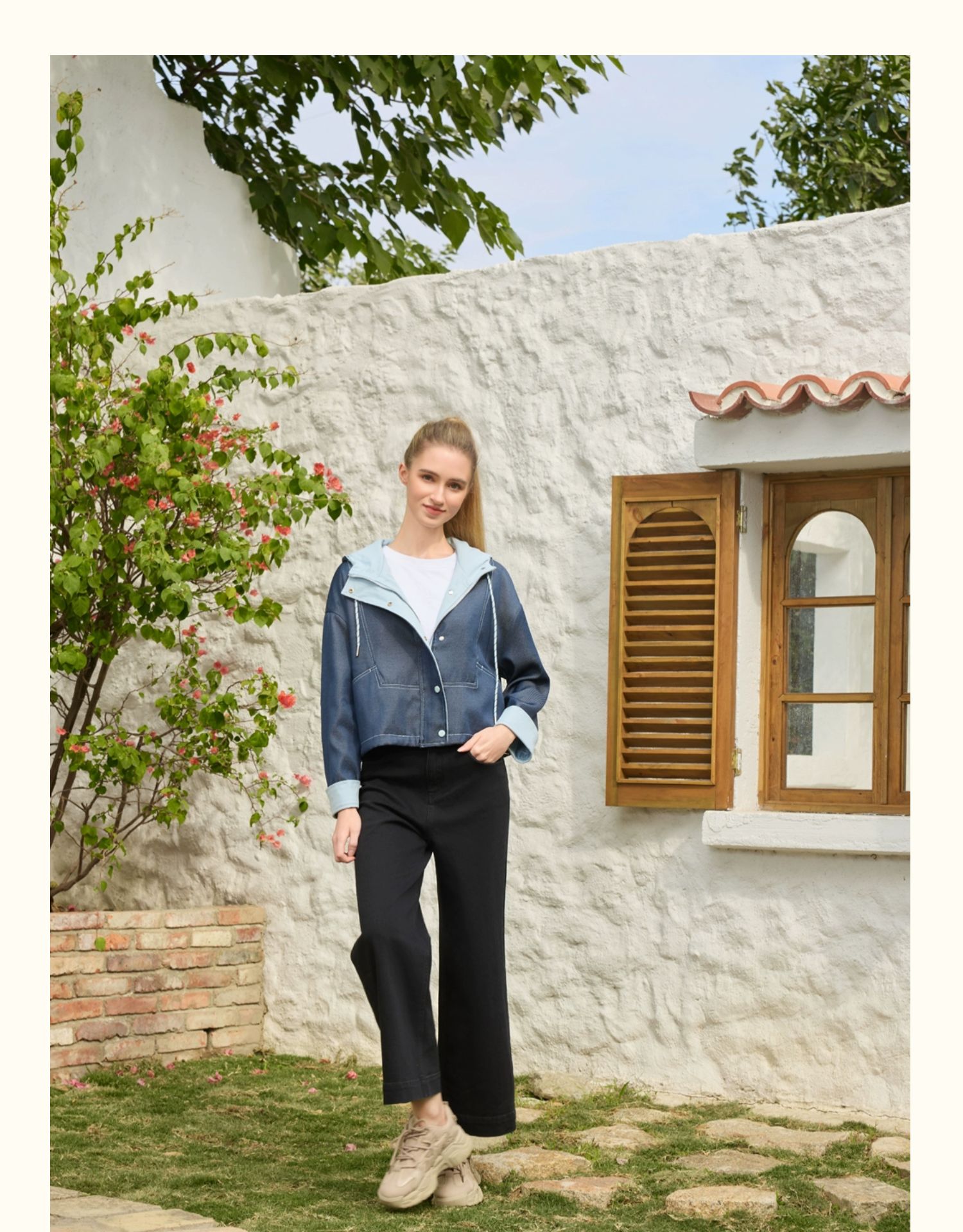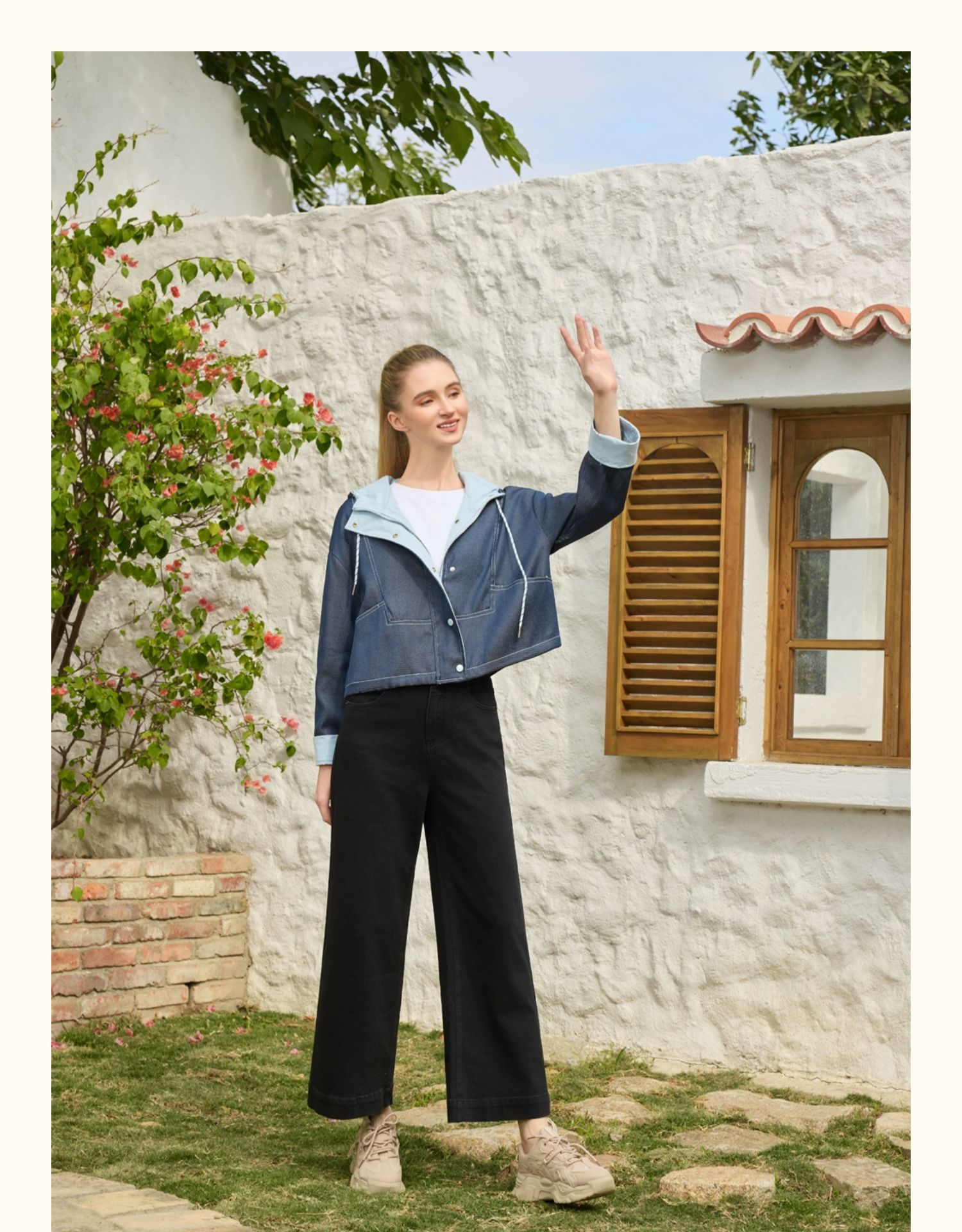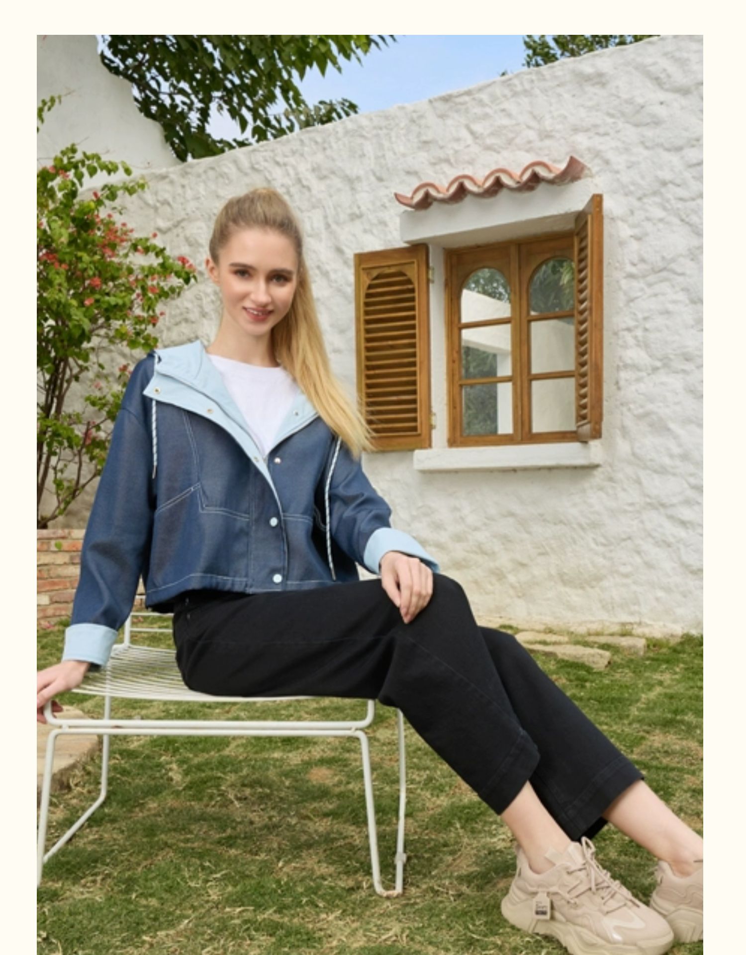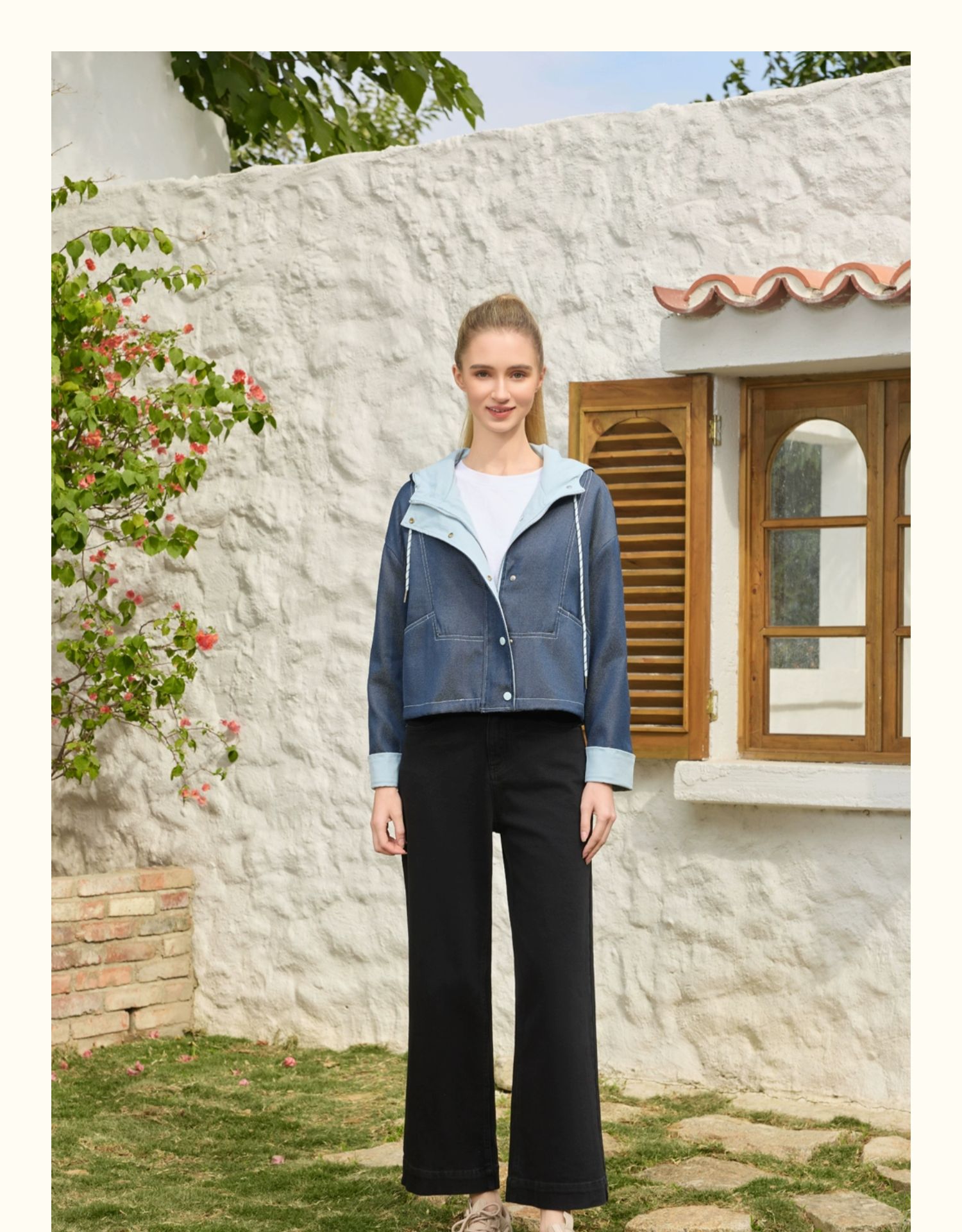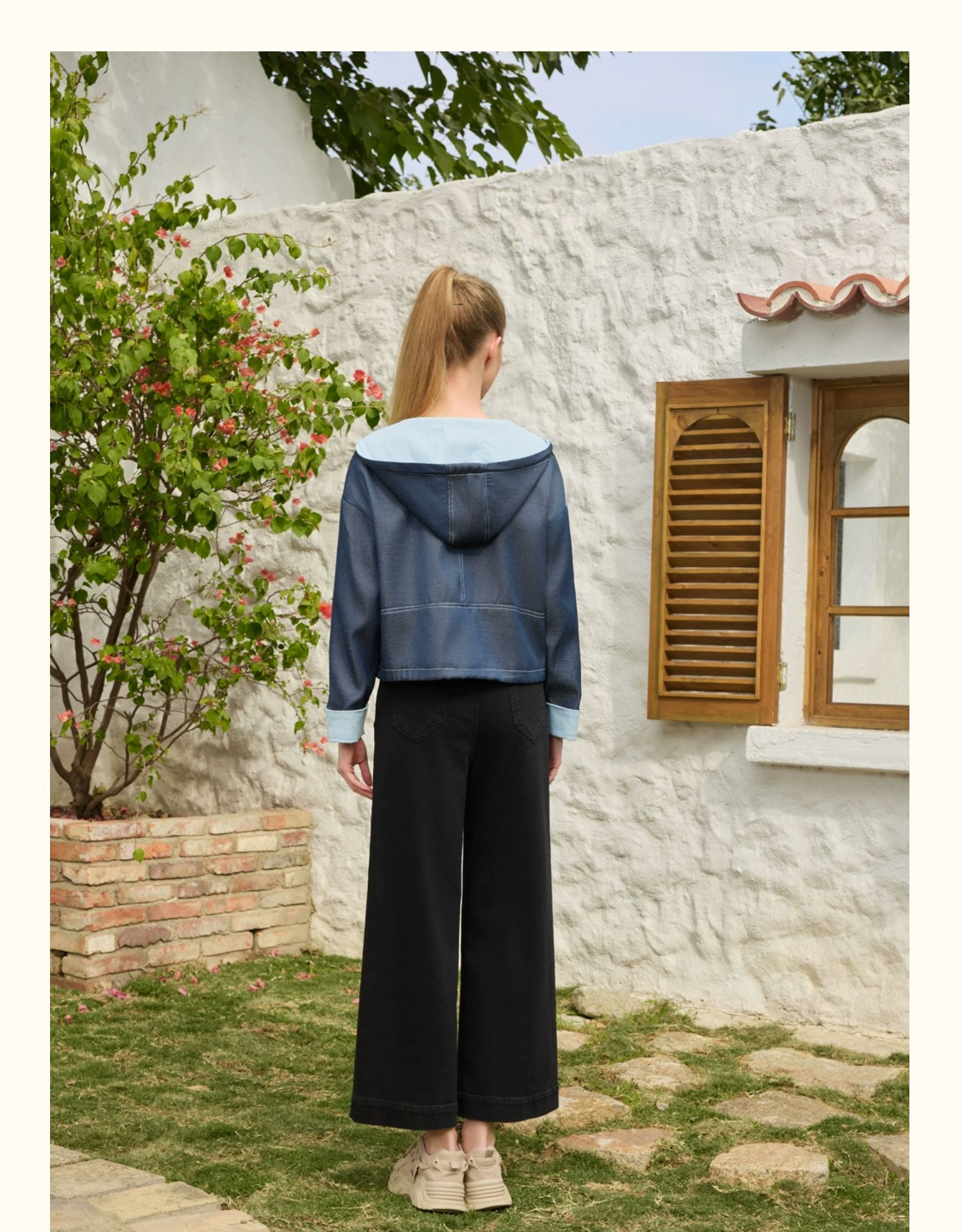 半身缘女装 春季撞色拼接时尚宽松连帽牛仔外套251113U05513423