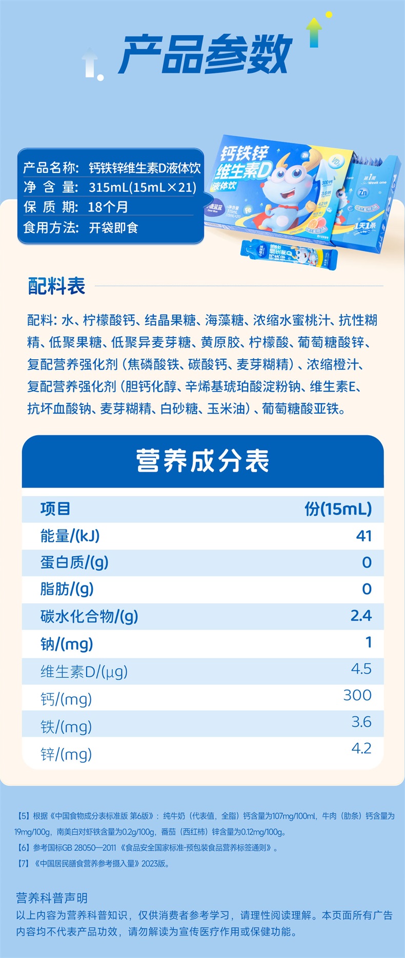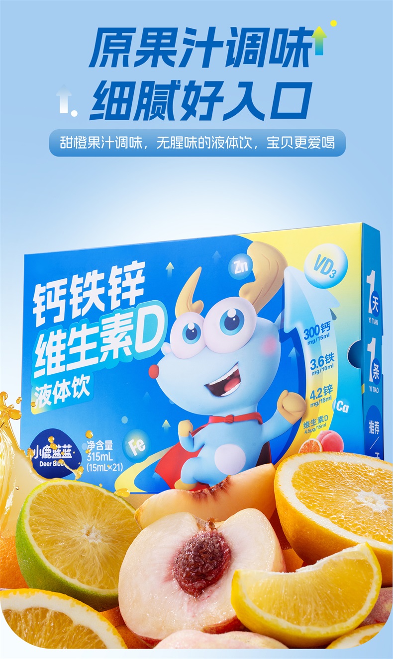 【小鹿蓝蓝钙铁锌维D饮】营养包维生素D3液体钙铁锌315ml