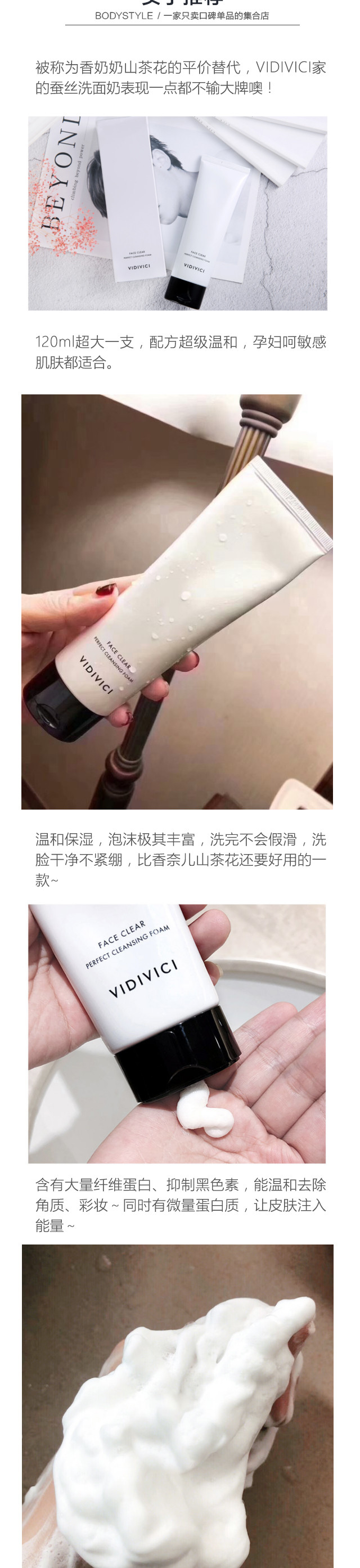 【抄底囤货】韩国vidivici女神洗面奶蚕丝泡沫洁面乳孕妇清洁毛孔补水保湿120ml*3