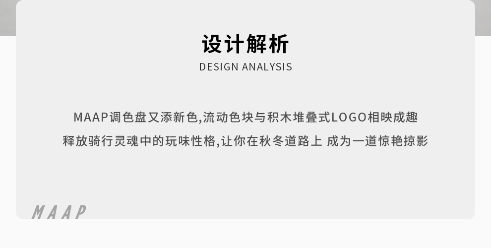 - MAAP作为澳洲功能性骑行服,其出色的时尚设计元素为骑行生活增添色彩。MAAP在为专业车手提升性能表现方面也毫不妥协。