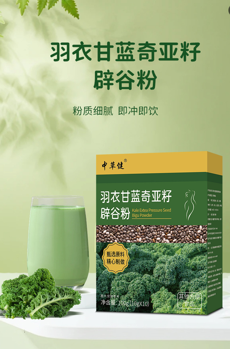 【粉质细腻,即冲即饮】羽衣甘蓝奇亚籽辟谷粉 早餐代餐高膳食纤维粉-QQ