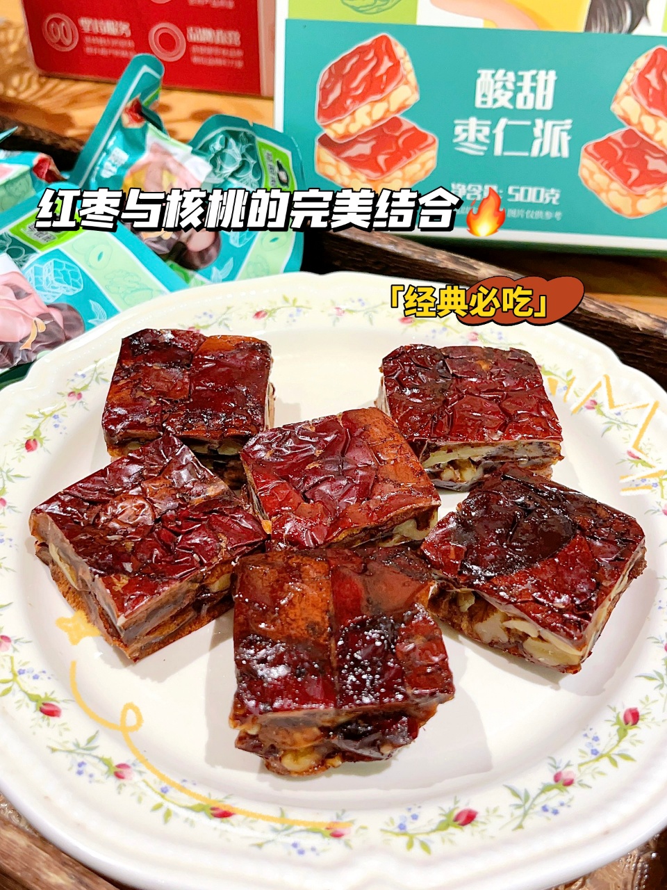 【美味零食丨核桃枣仁派】精选新疆和田大枣和汾阳老树核桃,皮薄肉厚颗粒饱满,经低温变频工艺烘烤,口感绵软有嚼劲,甜香酥脆,每一块都有独立真空包装,携带方便,可随时随地品尝美味
