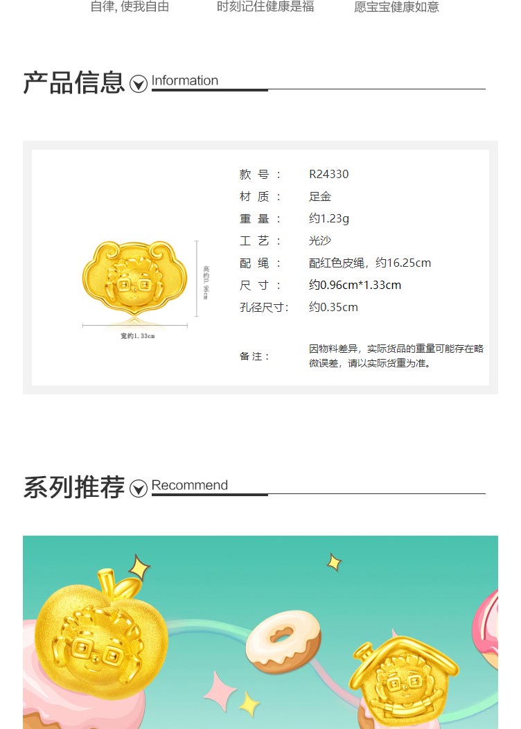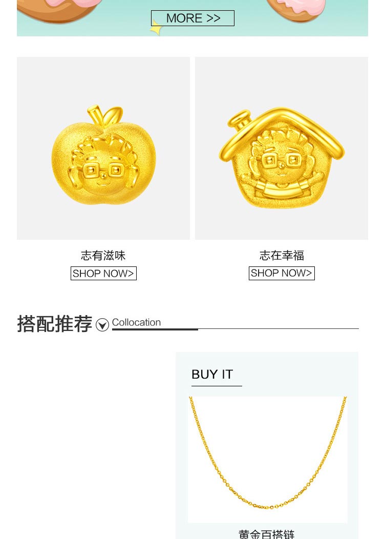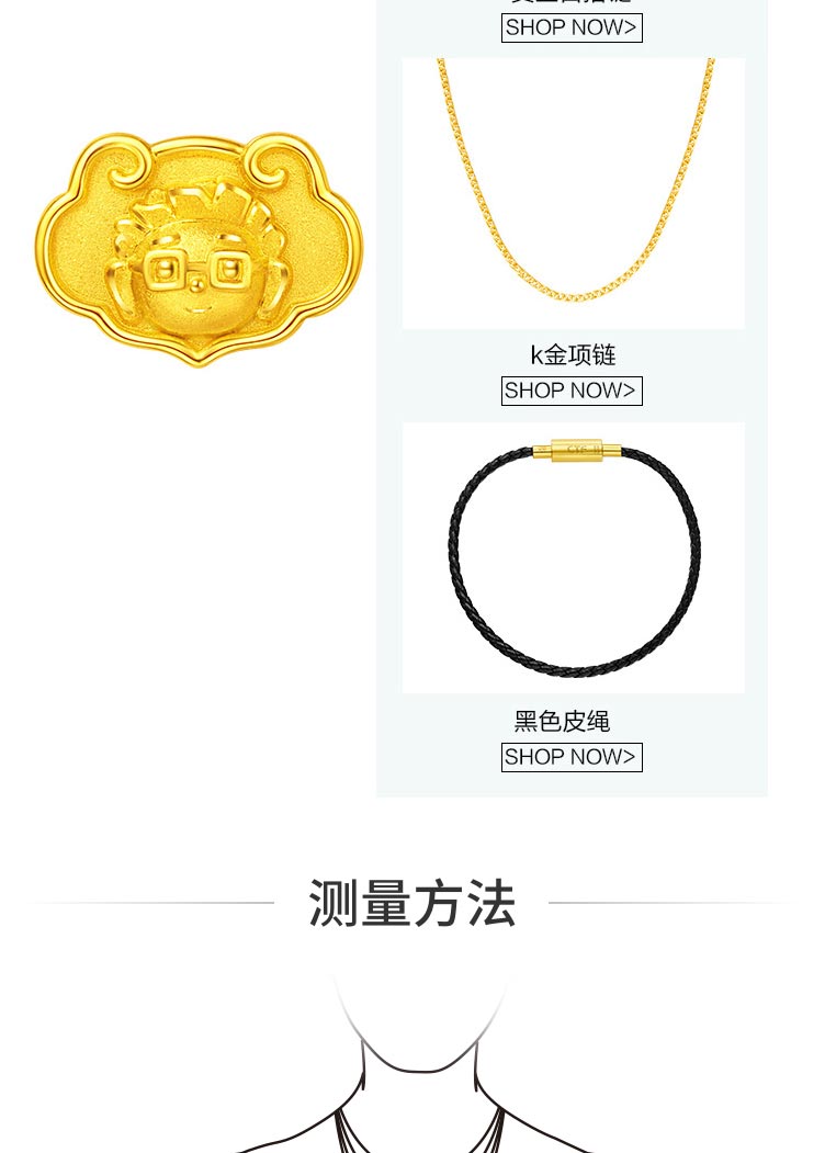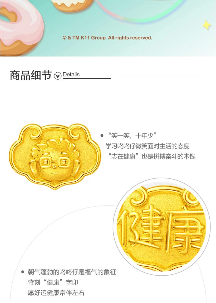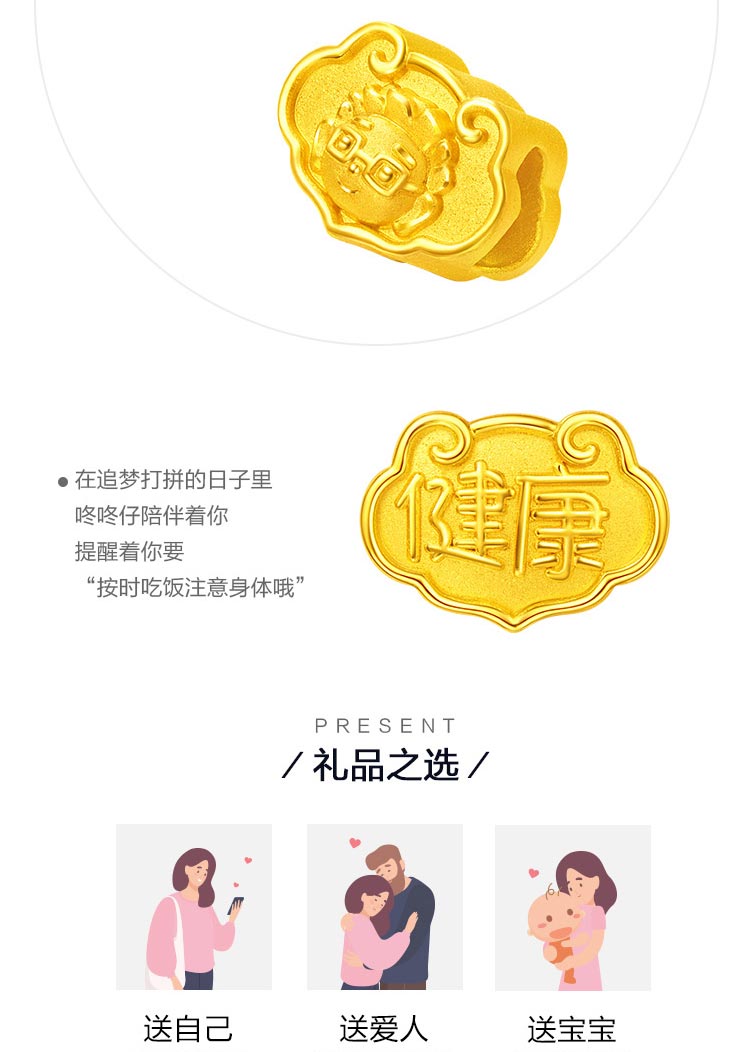 周大福心意祝福志在健康咚咚仔足金吊坠