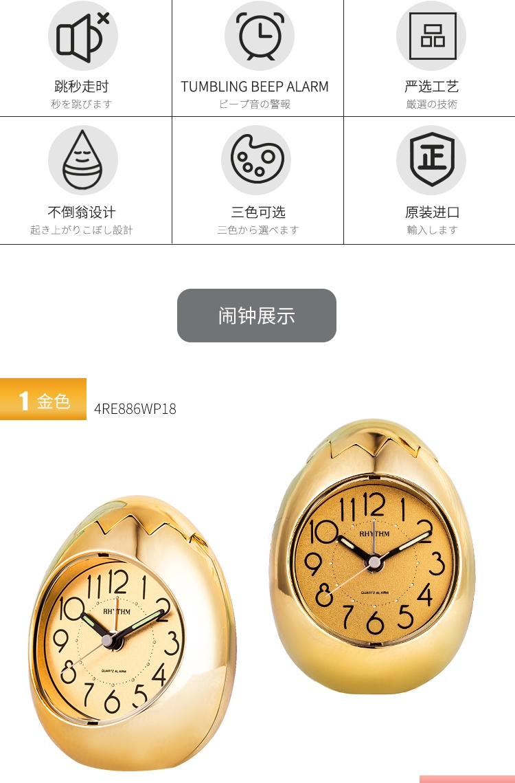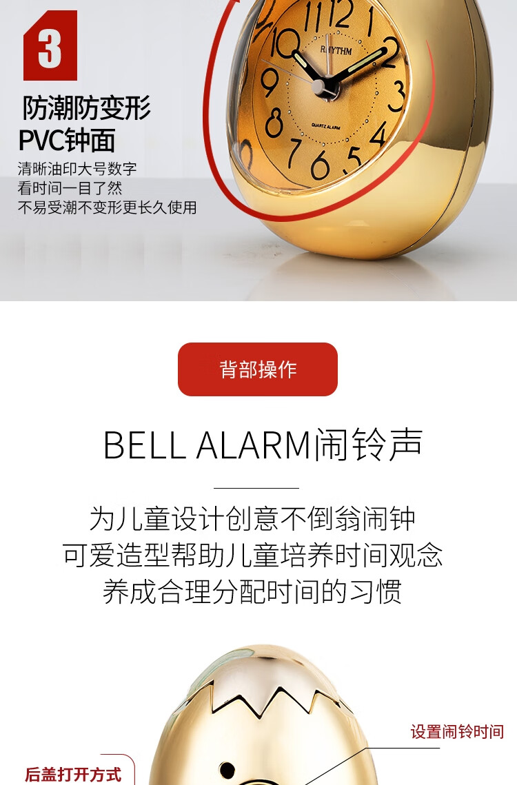 【多样屋专柜】多样屋专柜丽声创意不倒翁夜光闹钟静音可爱闹铃学生儿童卧室床头闹表9.3cm