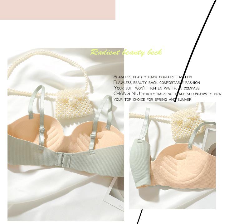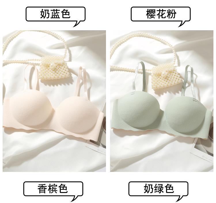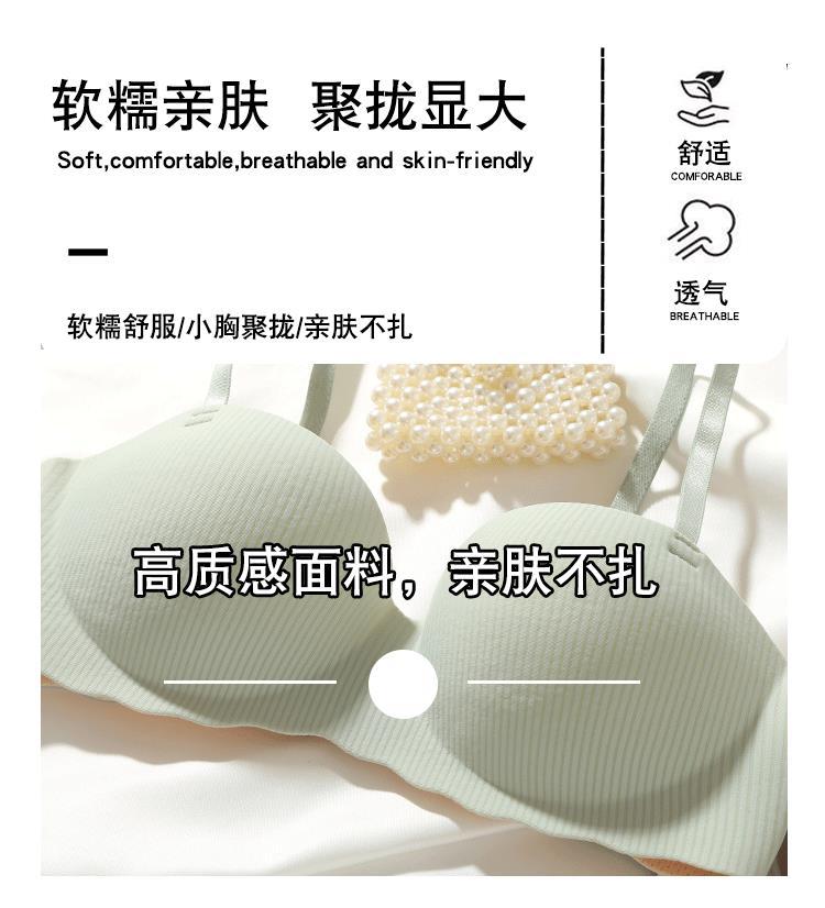 亲肤裸感无痕内衣女 小胸聚拢上托防下垂 外扩平胸显胸大 腰细美背无肩带文胸