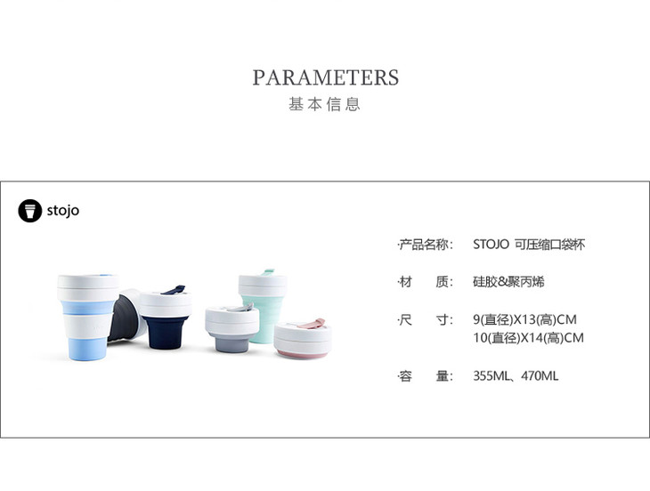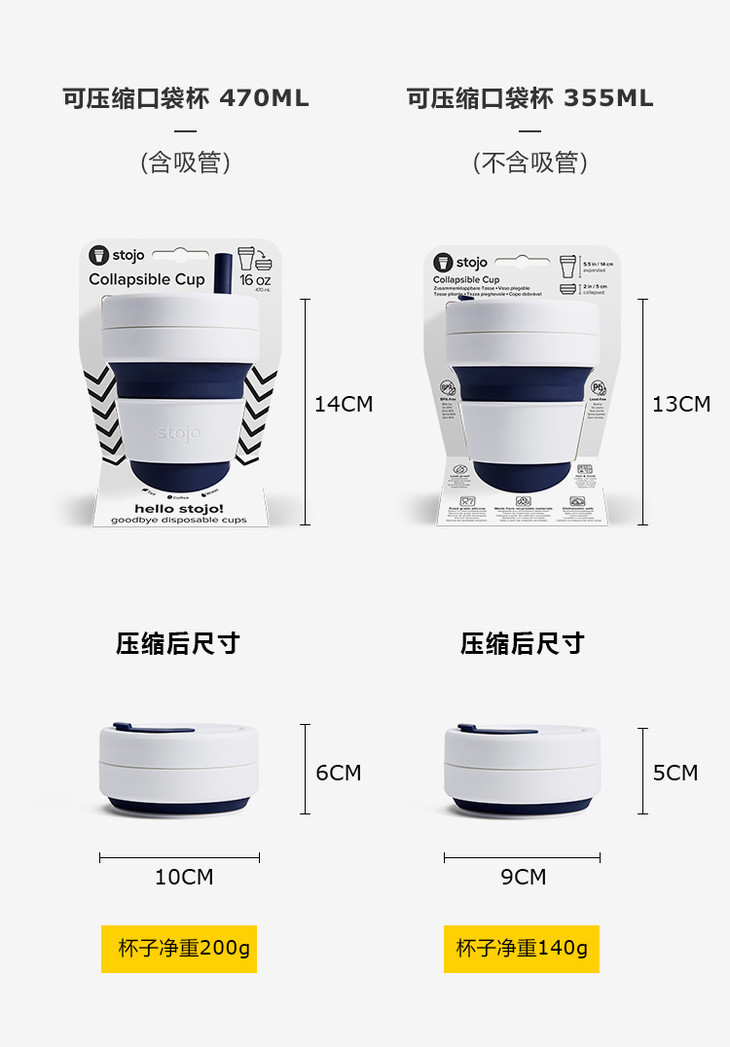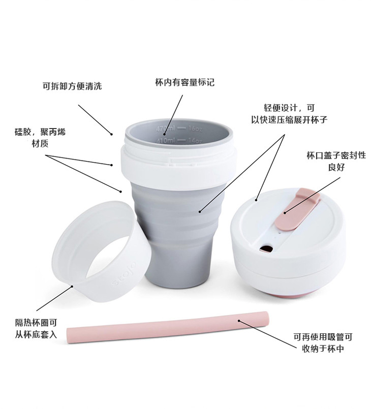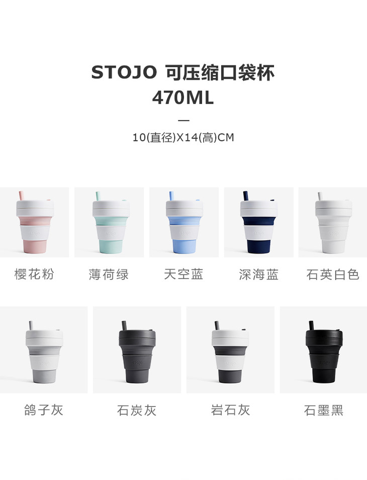 【亏本清仓】 STOJO 可压缩水杯 便携硅胶折叠运动水杯470ml (不支持无理由退换)[福利品]