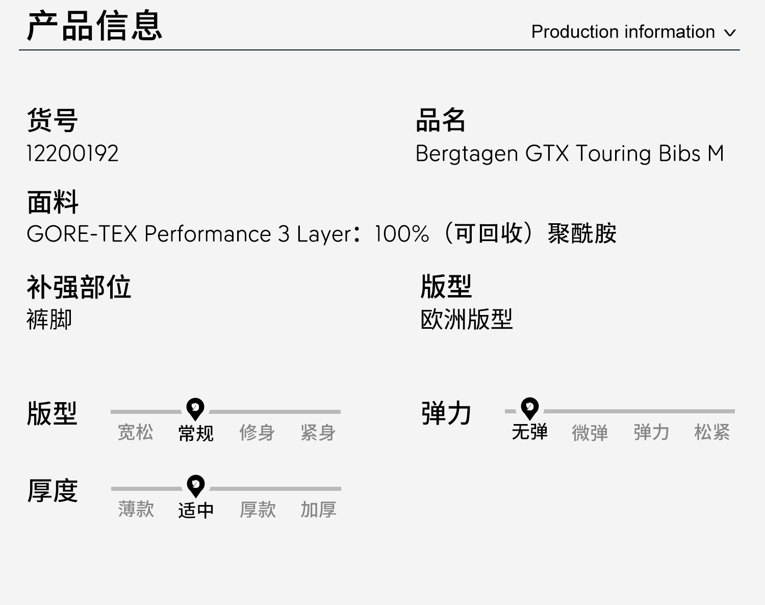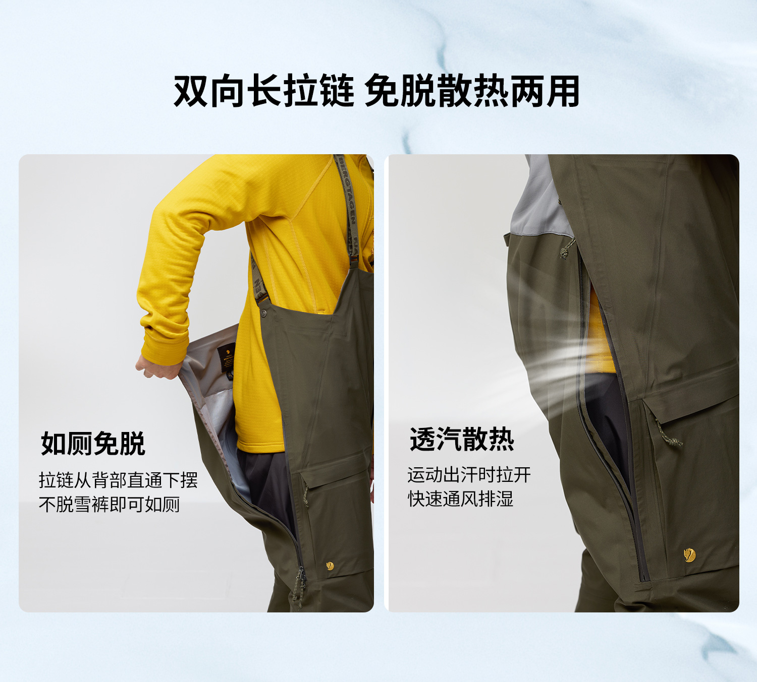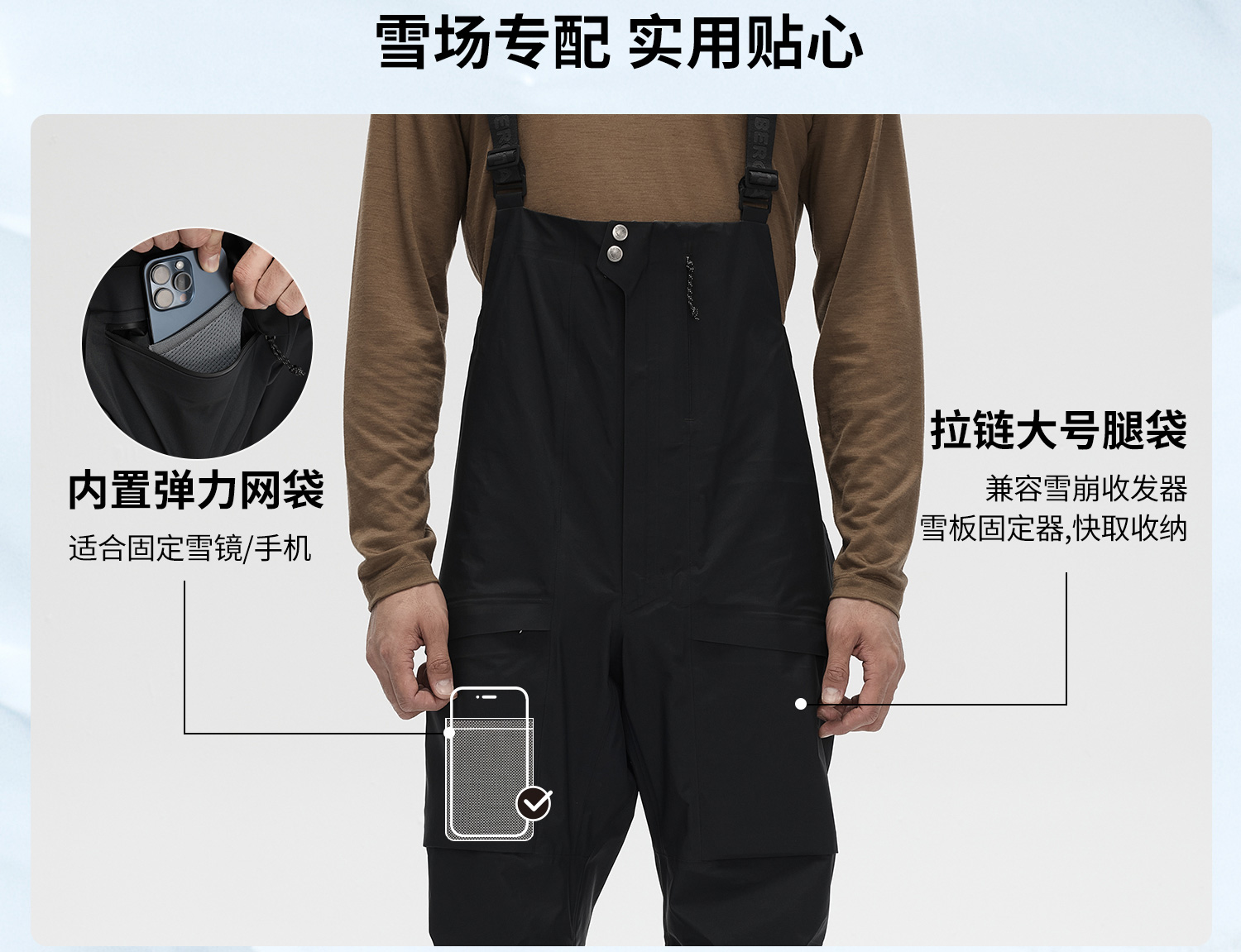 北极狐 男士GTX防水耐磨滑雪裤 无PFAS防风滑雪背带裤12200192
