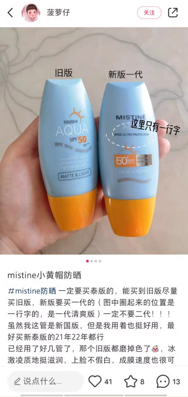 【商品名称】Mistine蜜丝婷小黄帽防晒霜40ml spf50 PA+++