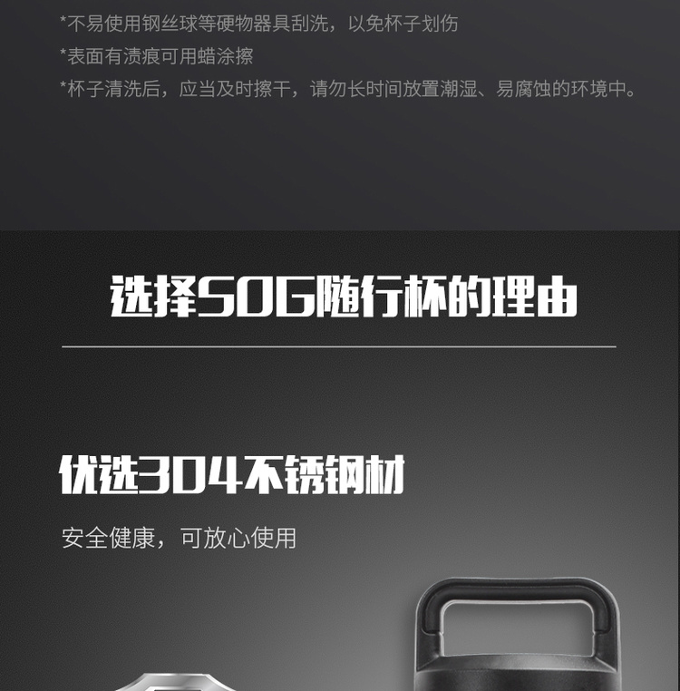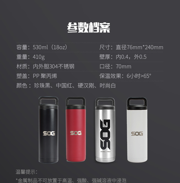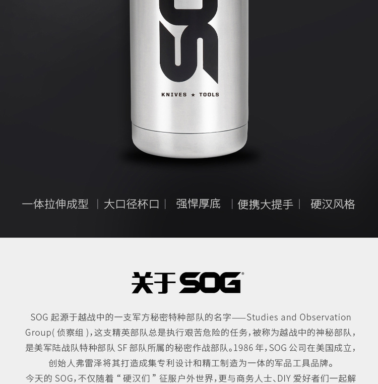 SOG索格 大口径双层真空 304不锈钢饮水杯便携保温随行杯旅行壶