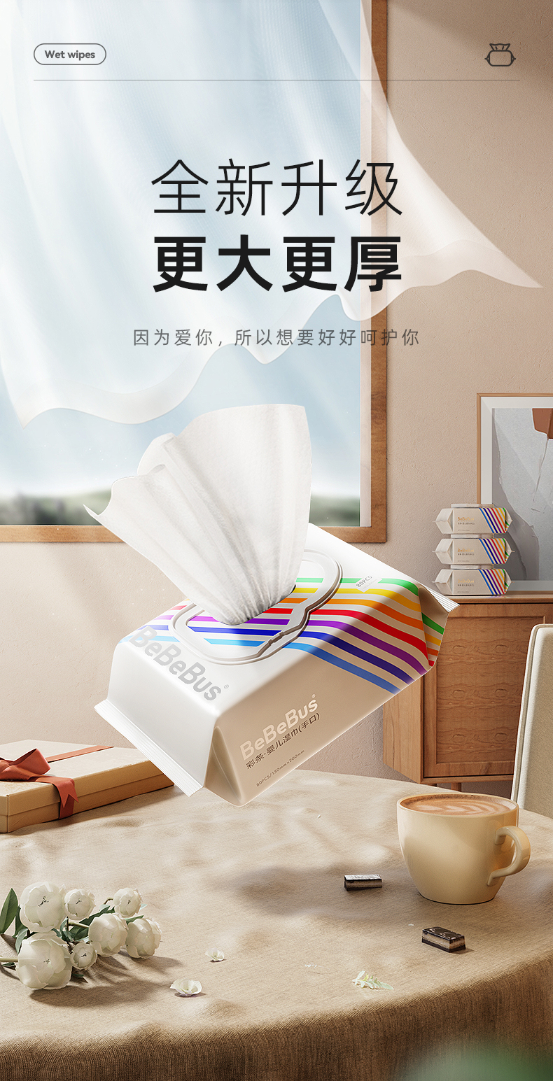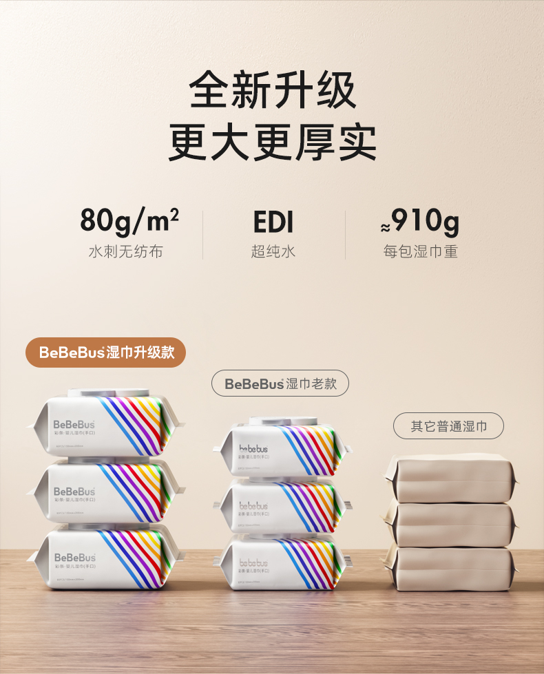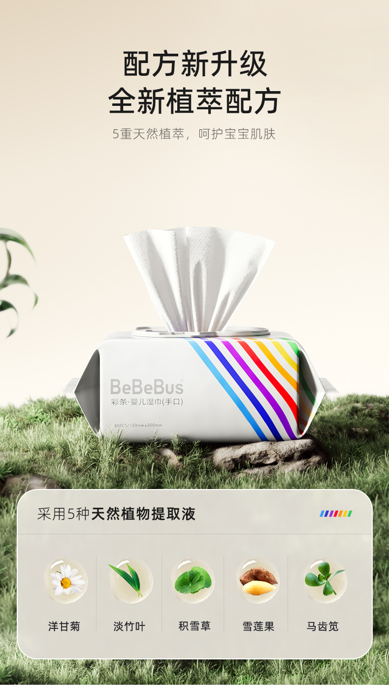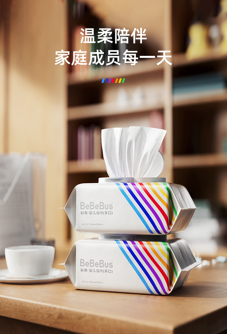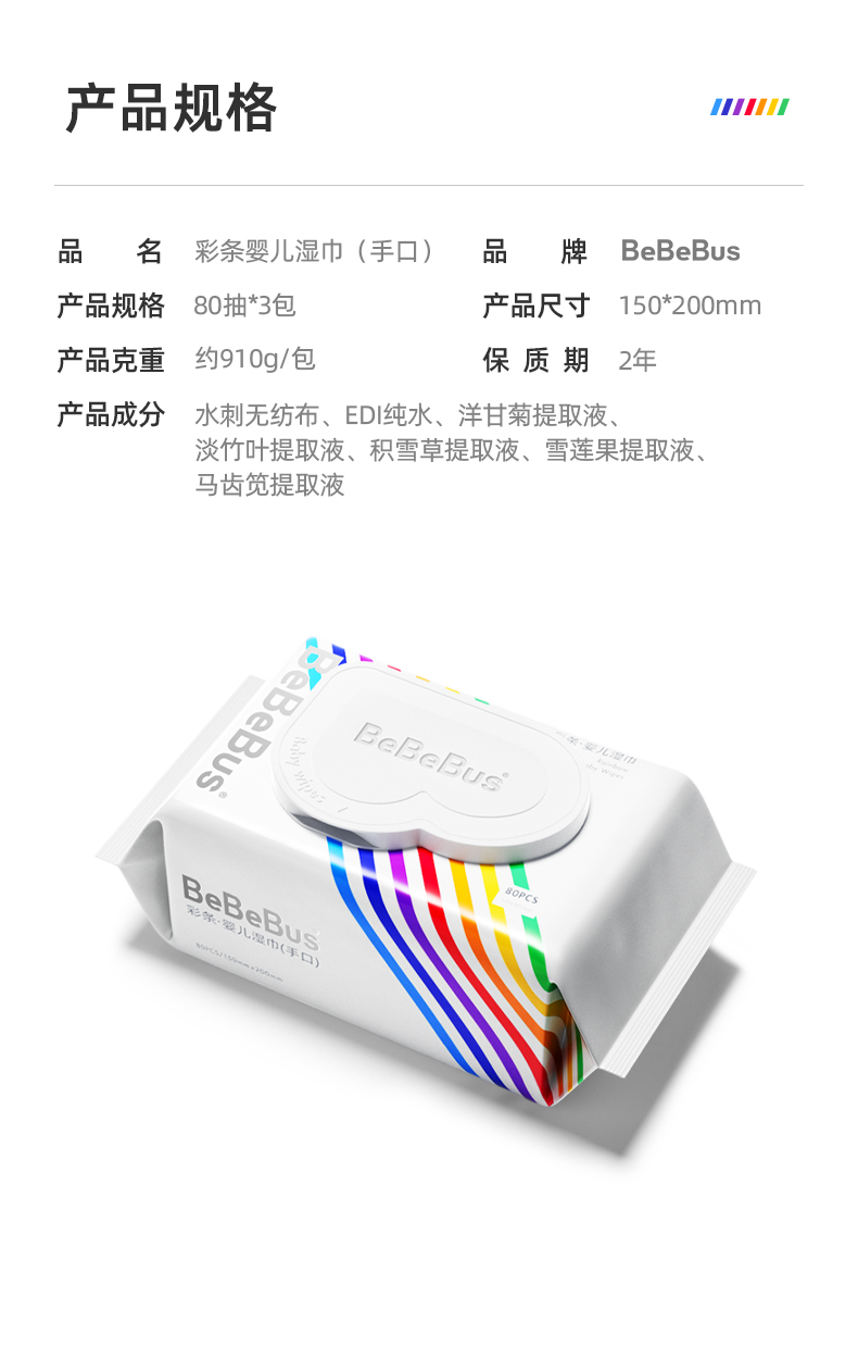 BeBeBus彩条湿巾80抽3包/12包【会员积分加钱购】