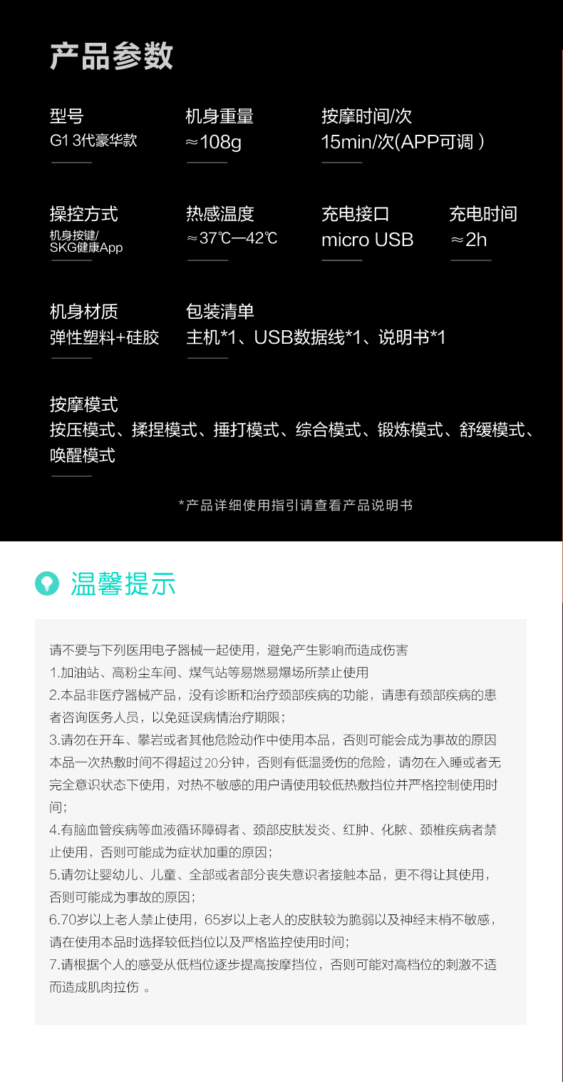 SKG颈椎按摩仪G1系列3代 白色 豪华款