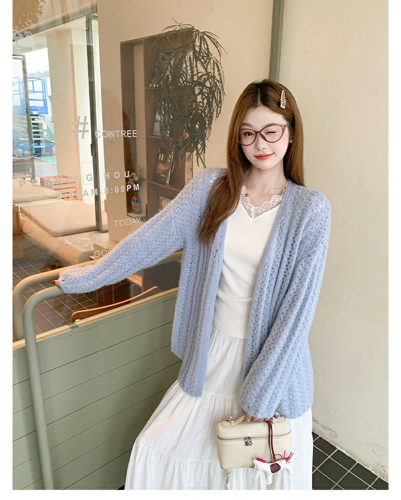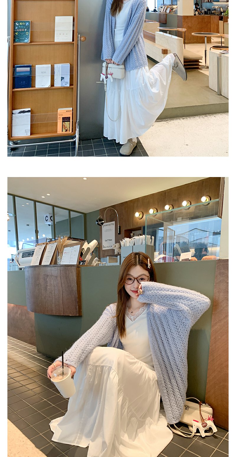 【189元任选2件】现货!2色镂空中长款针织开衫