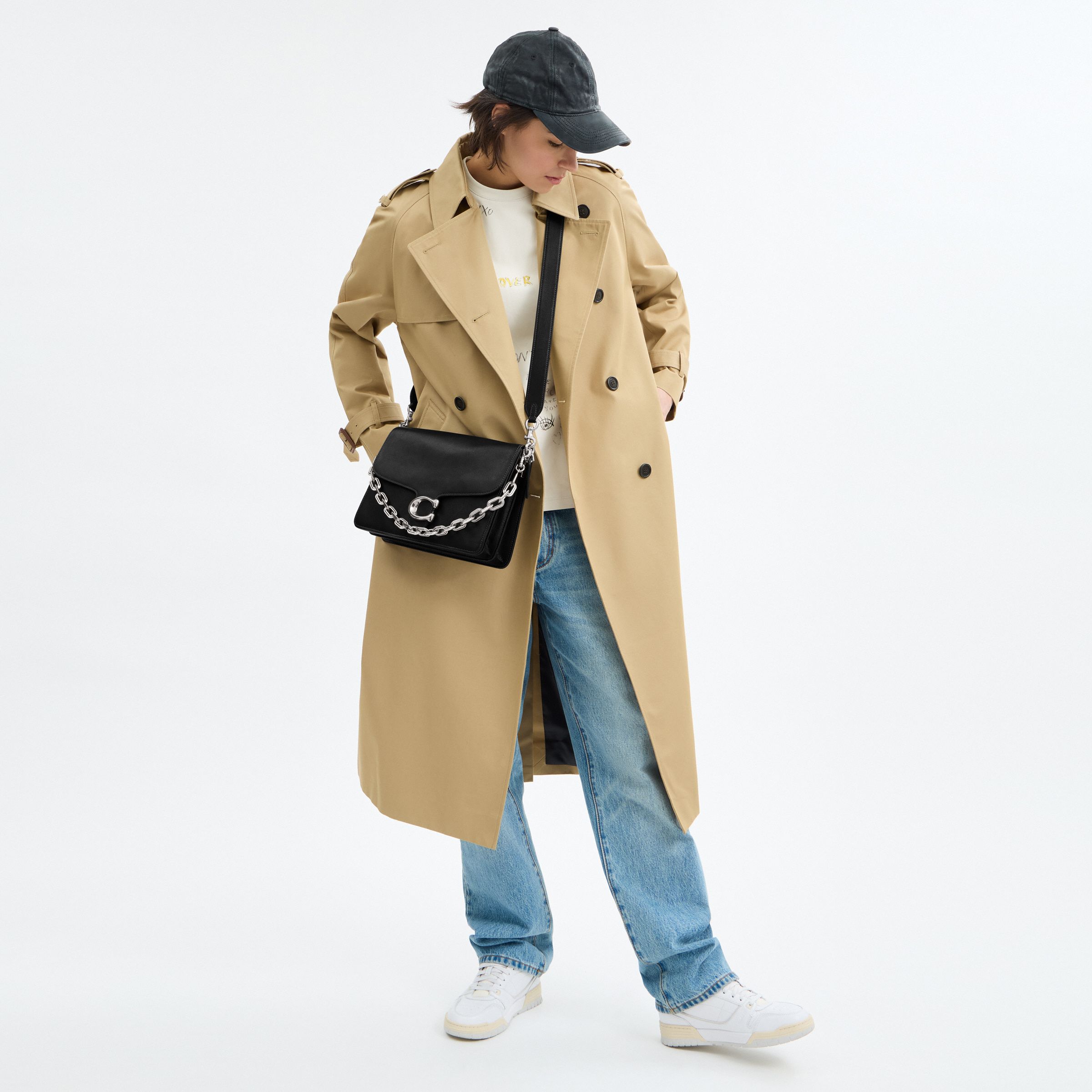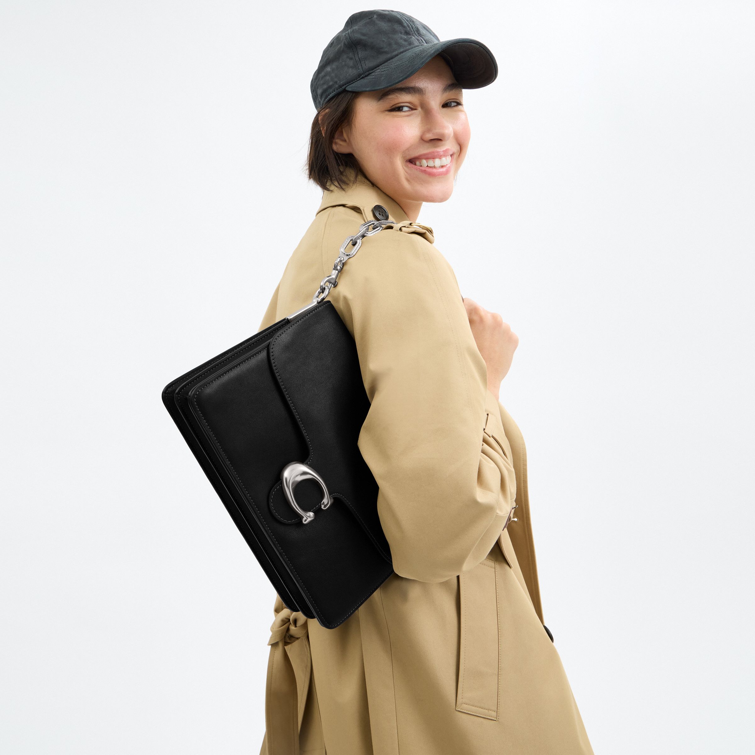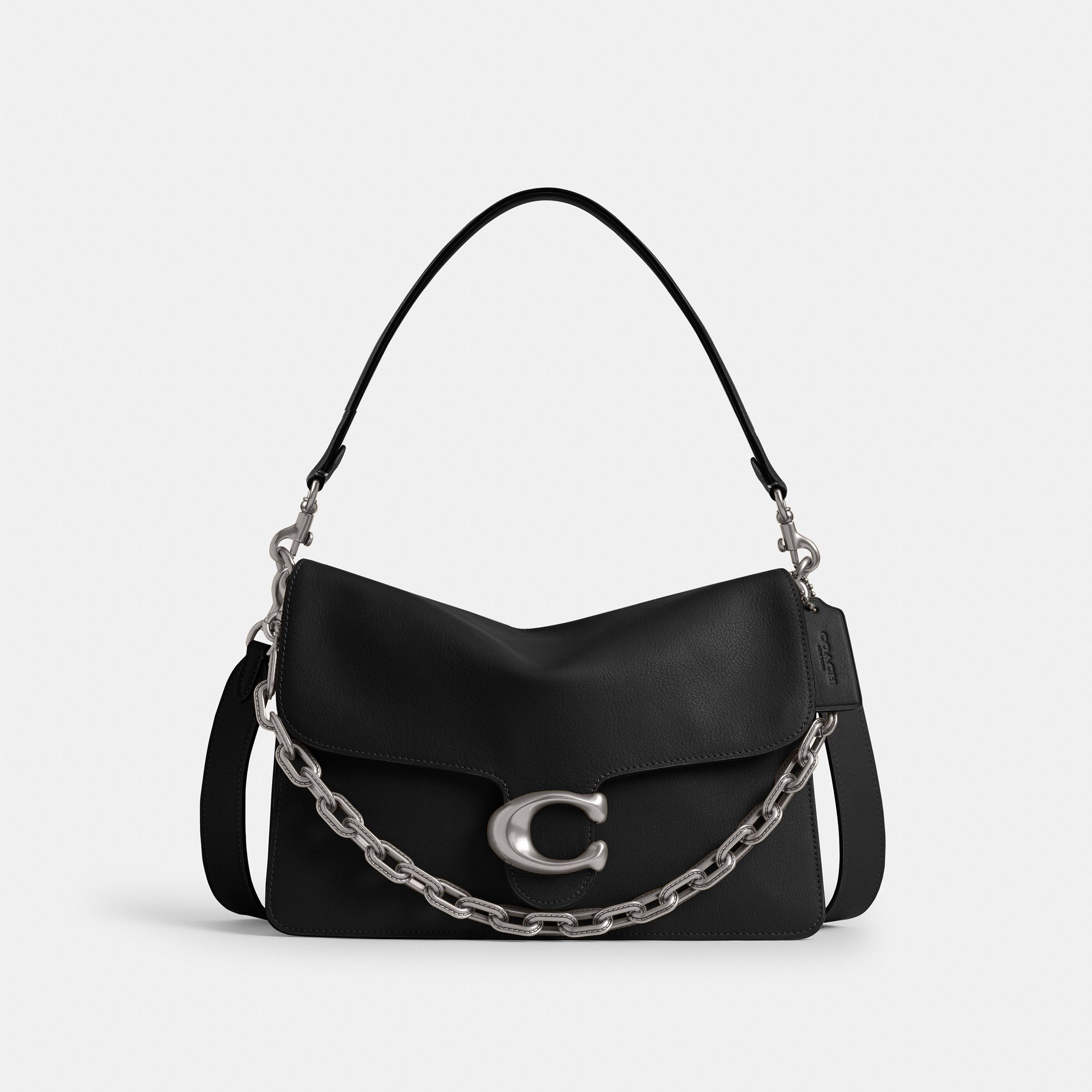 牛皮革 C字磁扣翻盖 内里双隔层 后置拉链扁平口袋 银色链条+可拆卸肩带+皮质长肩带