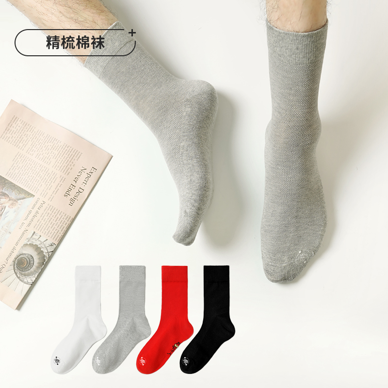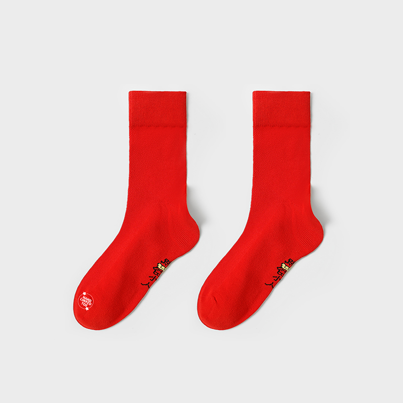 都市丽人都市锋尚简约系列精梳棉袜子中厚男士中筒袜本命年必备红品红色新年本命年红品FC3CA4
