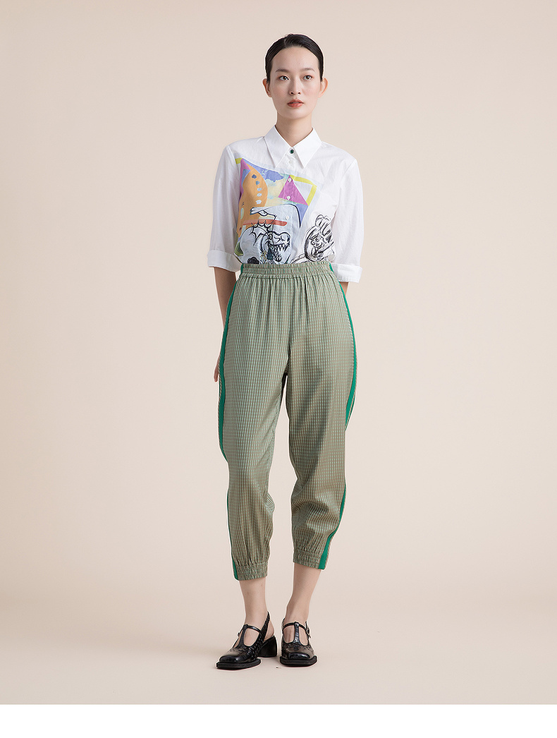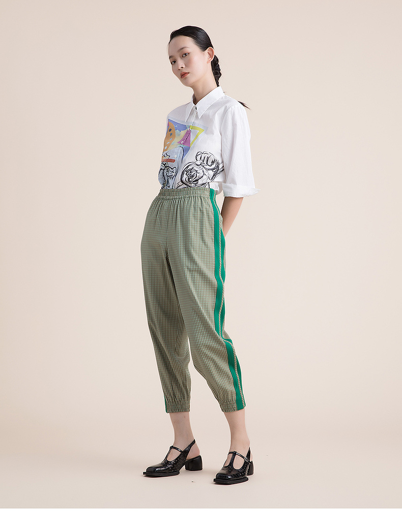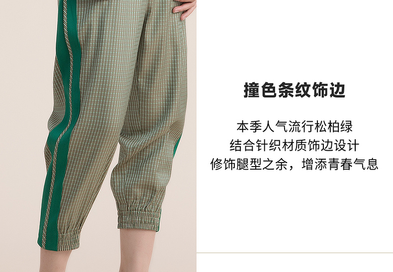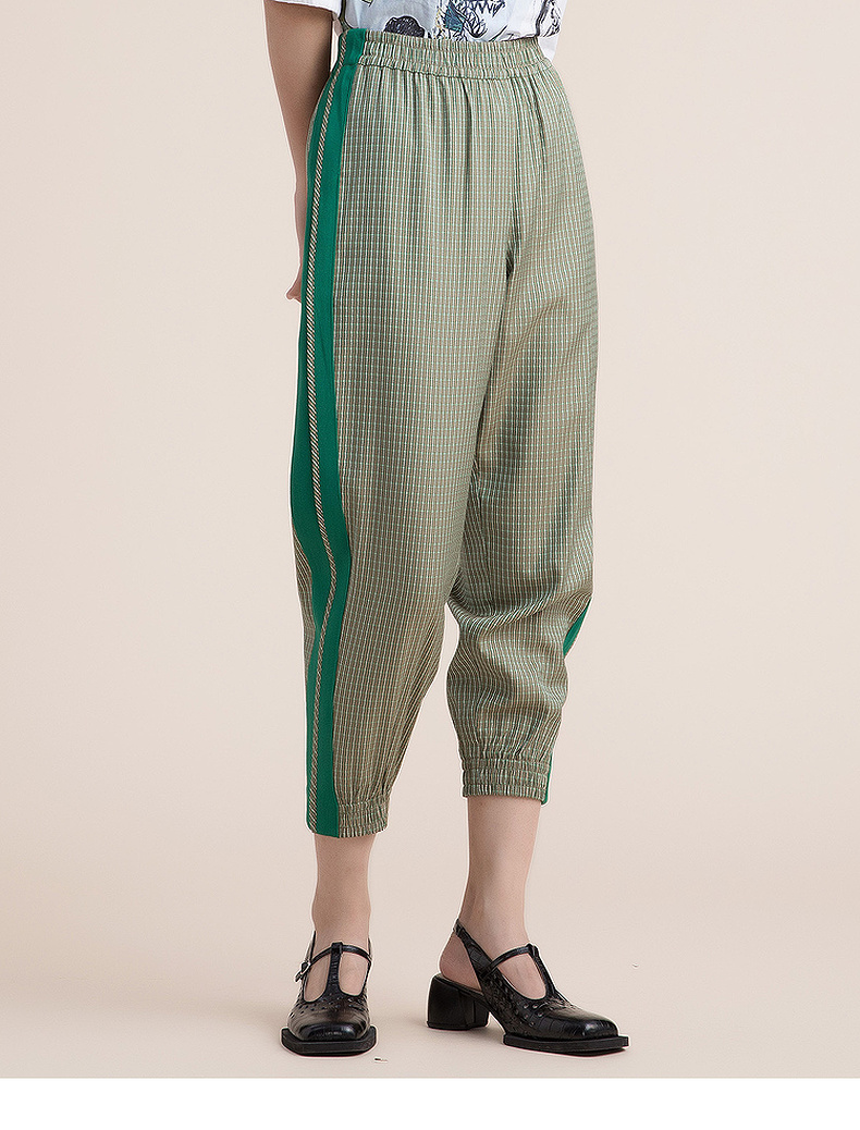 谜底休闲裤女2022夏季新款时尚简约条纹个性九分裤女222MK0583